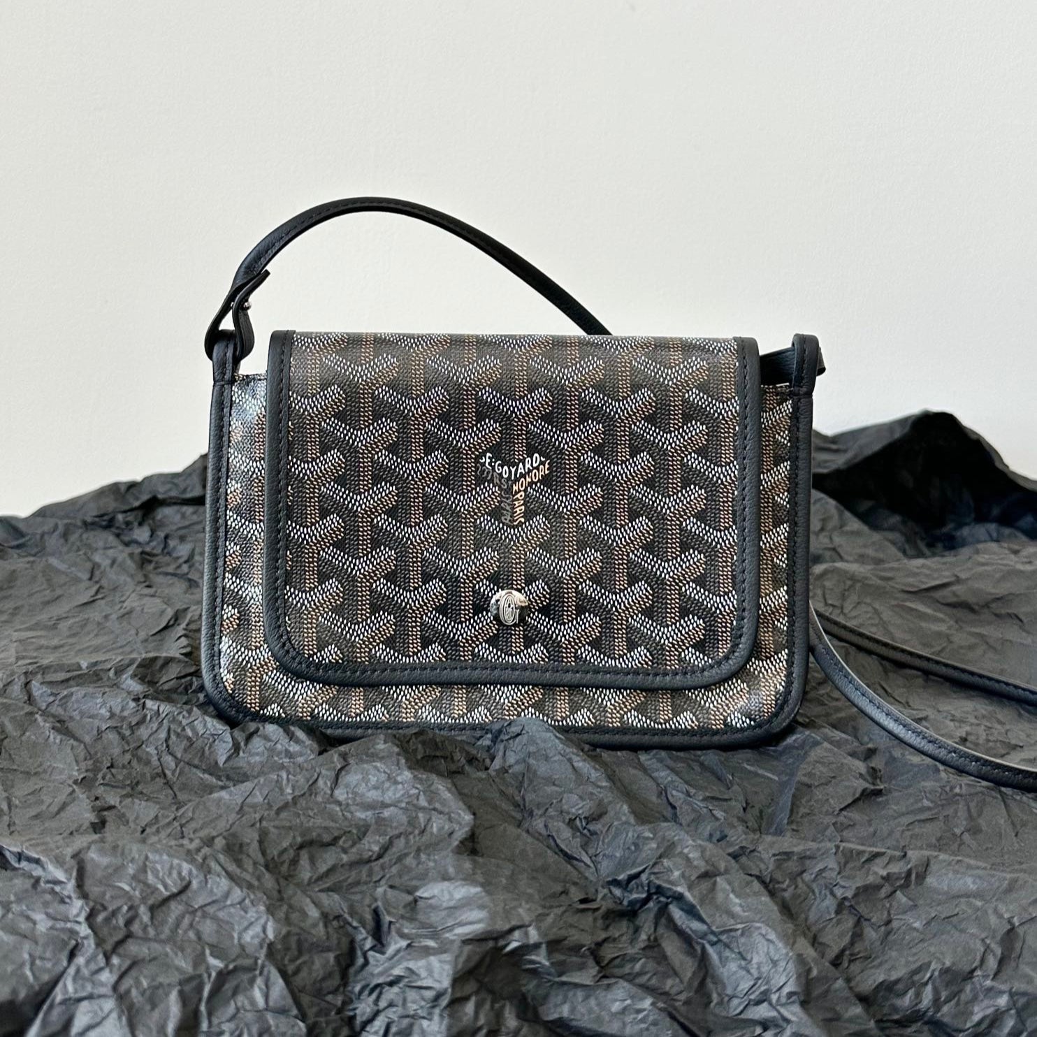 PLUMET POCKET WALLET 20 IN GREY BLACK GOYARDINE CANVAS AND LAMBSKIN TRIM