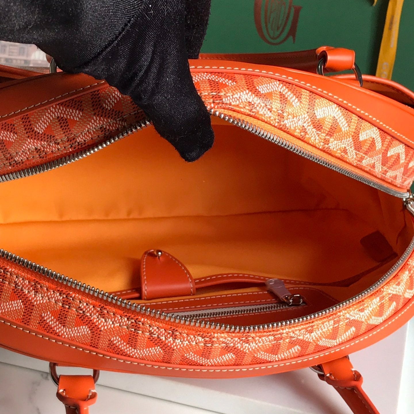 SAINT JEANNE BAG 35 IN RED ORANGE GOYARDINE CANVAS AND CALFSKIN