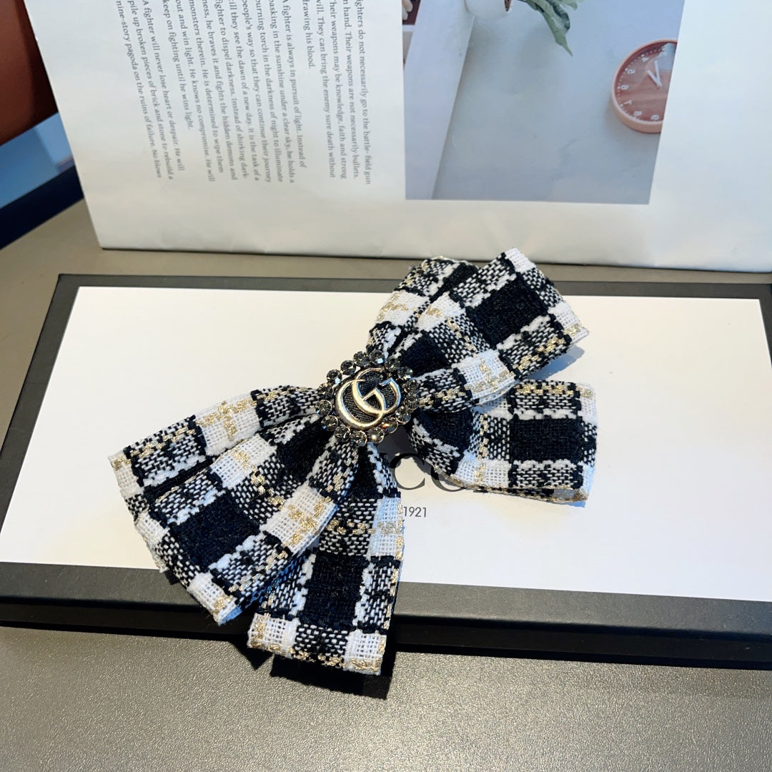 - RETRO BOW HAIR CLIP IN BLACK MIX WHITE TWEED 432763