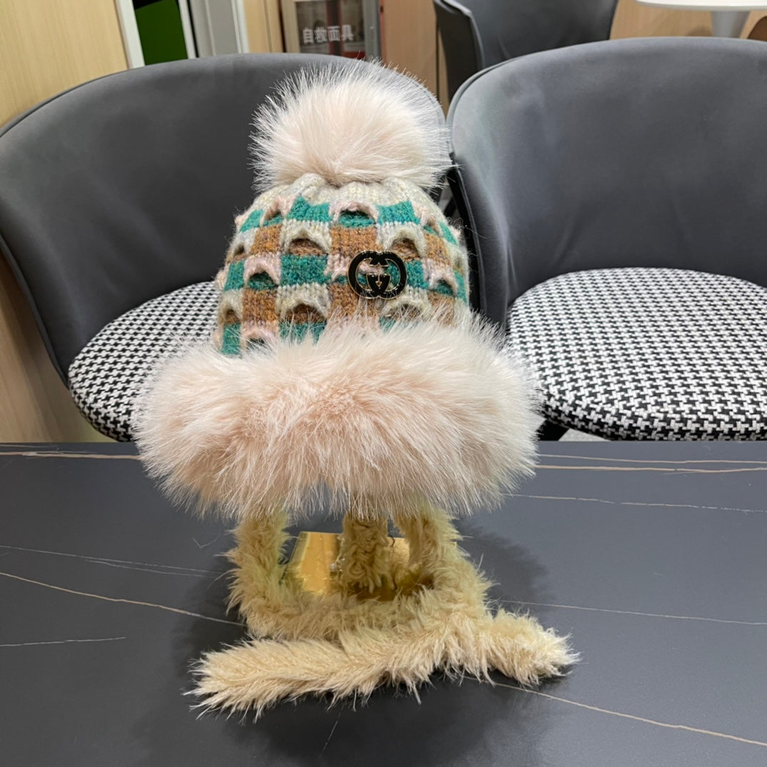 BEANIE HAT IN COLORFUL WOOL AND RABBIT FUR 392116