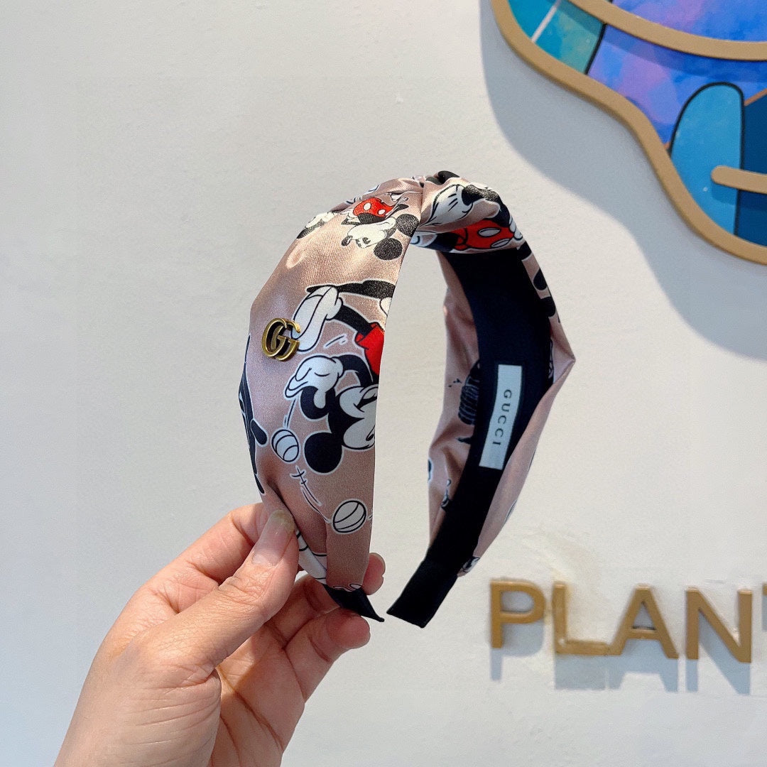 MICKEY PRINT HAIRBAND IN LIGHT PINK SILK 409359