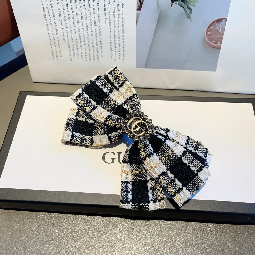 RETRO BOW HAIR CLIP IN BLACK MIX WHITE TWEED 432763