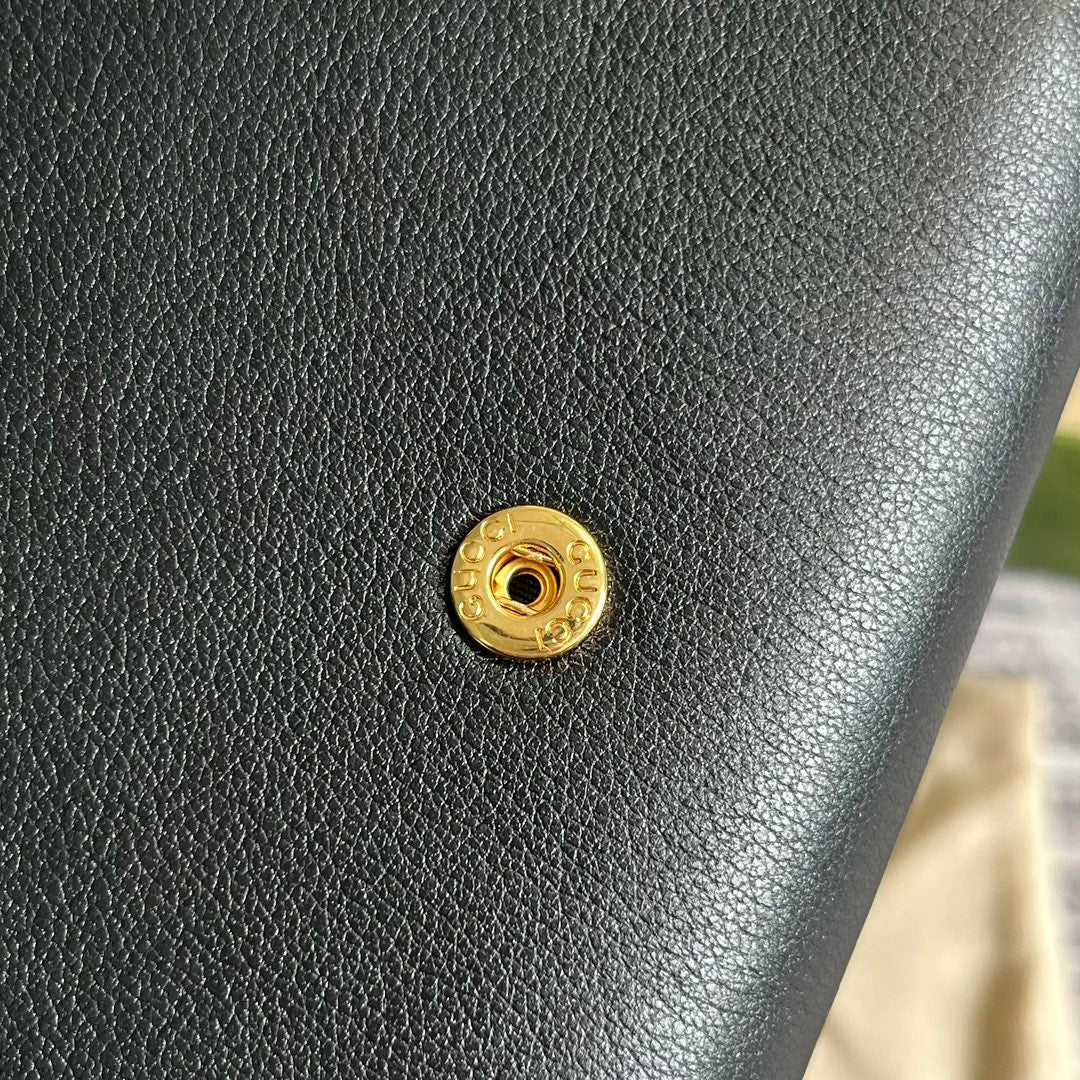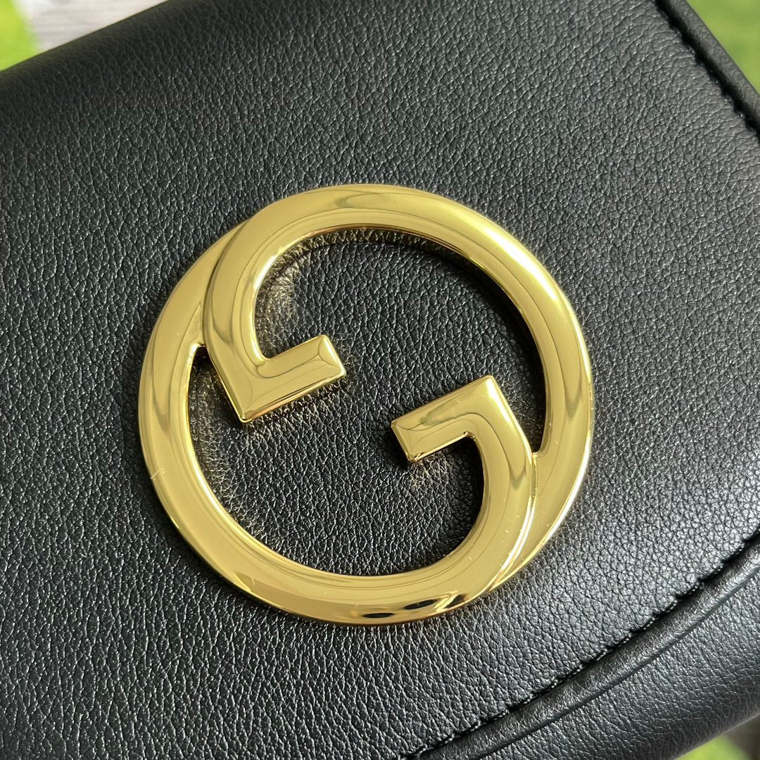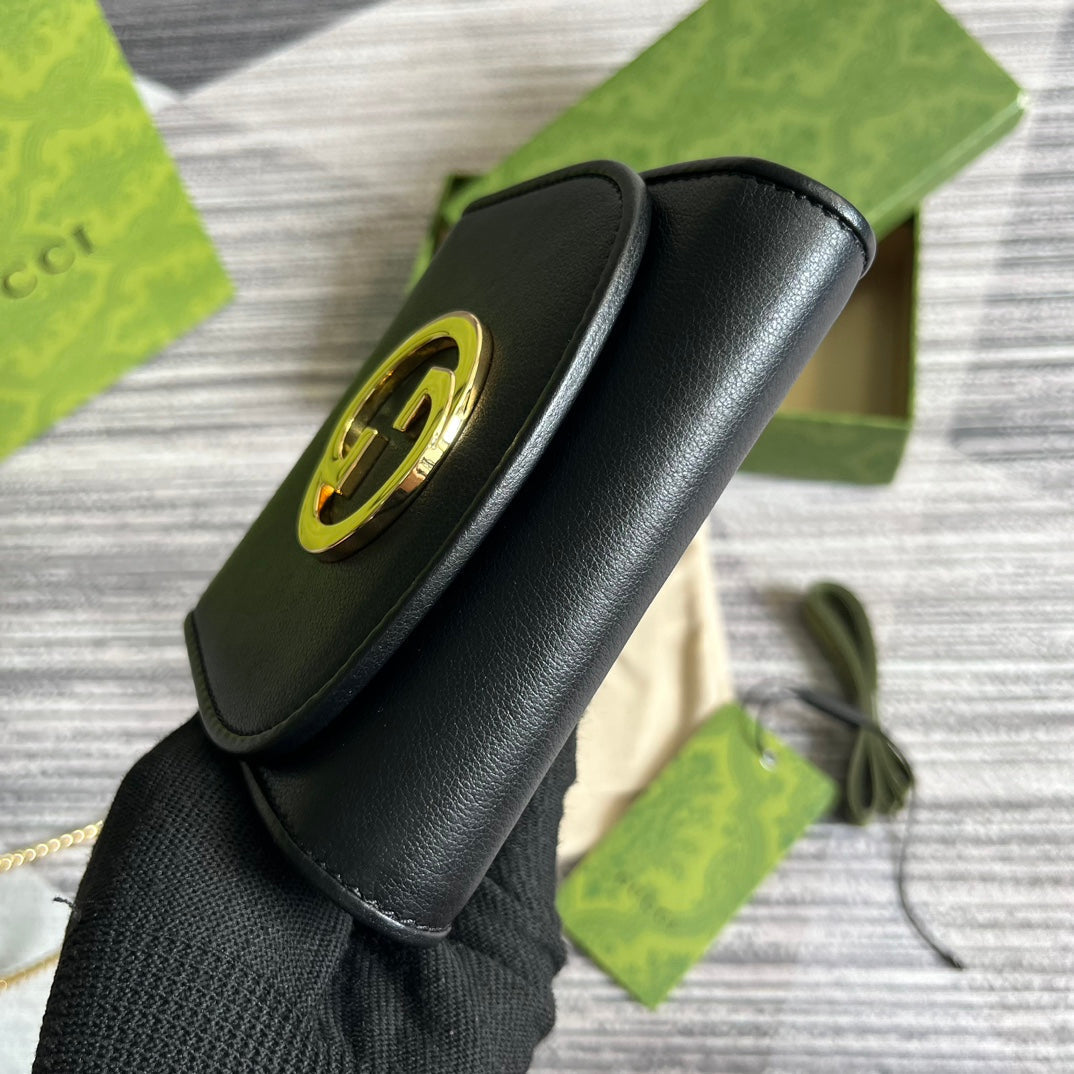 BLONDIE INTERLOCK MINI SHOULDER BAG 12 IN BLACK CALFSKIN GOLD CHAIN