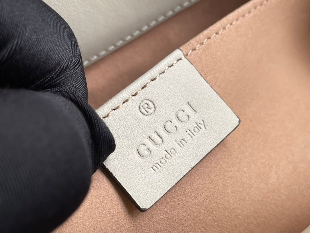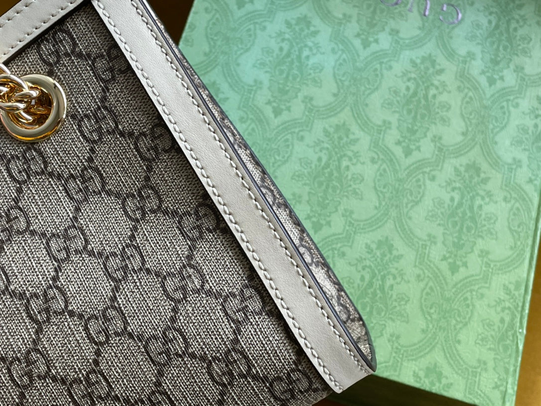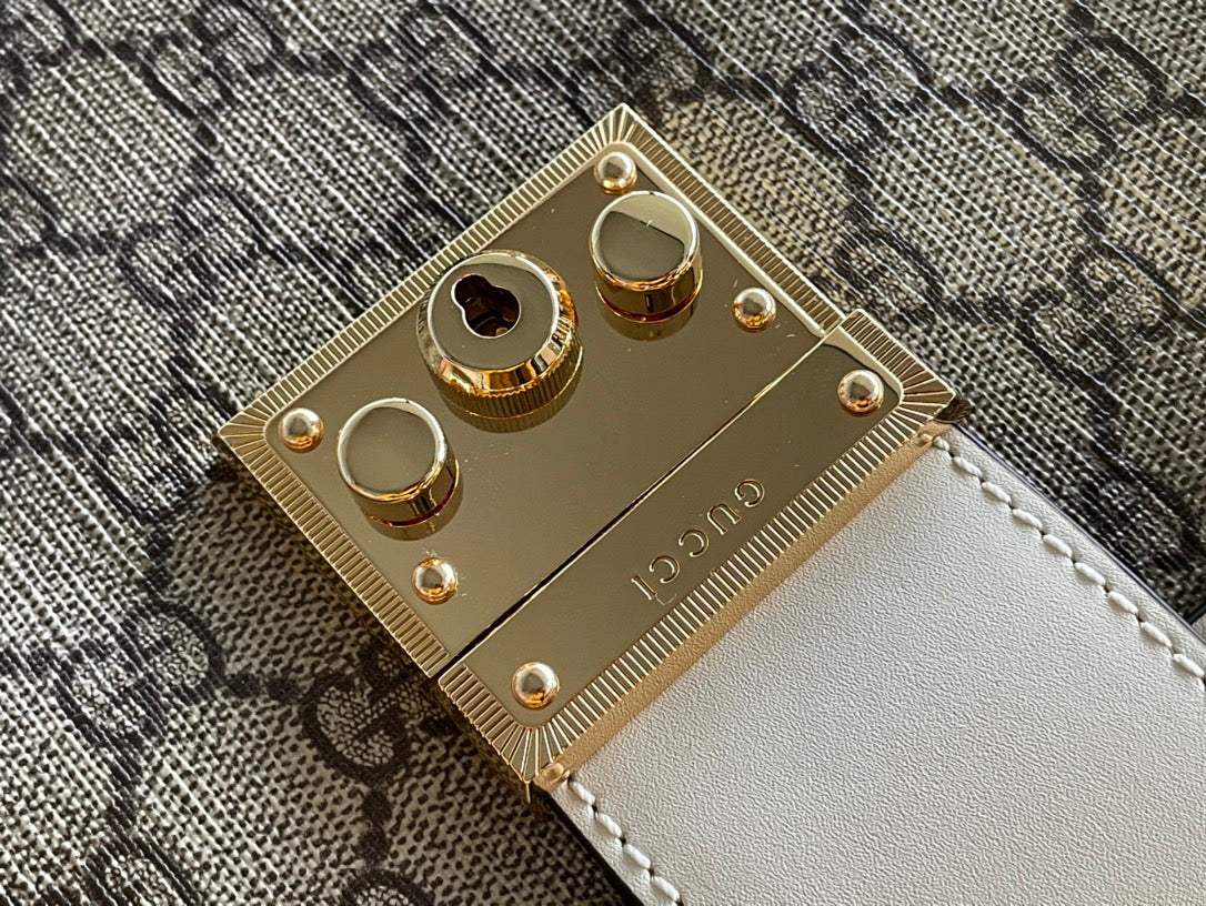 GG PADLOCK MEDIUM 26 SHOULDER BAG BEIGE CANVAS AND WHITE CALFSKIN