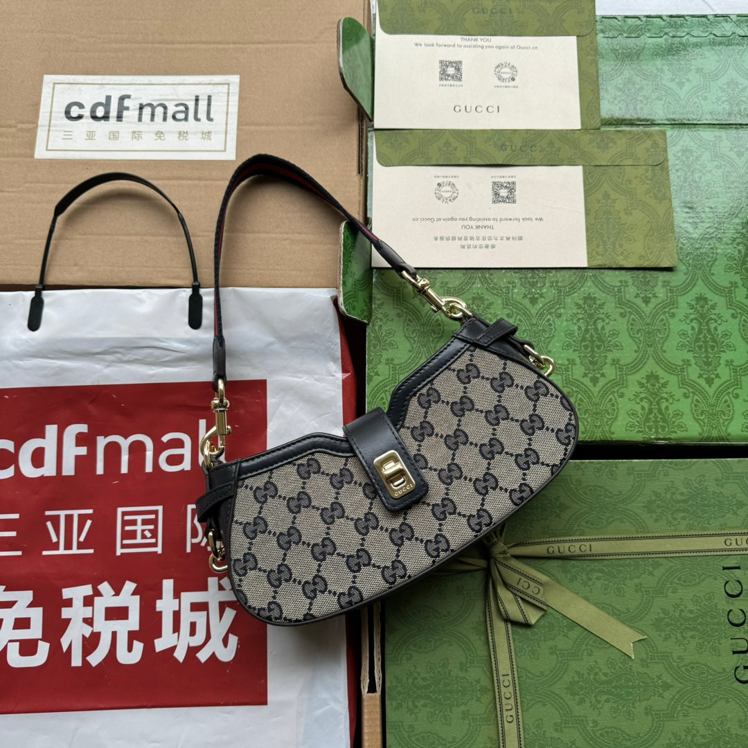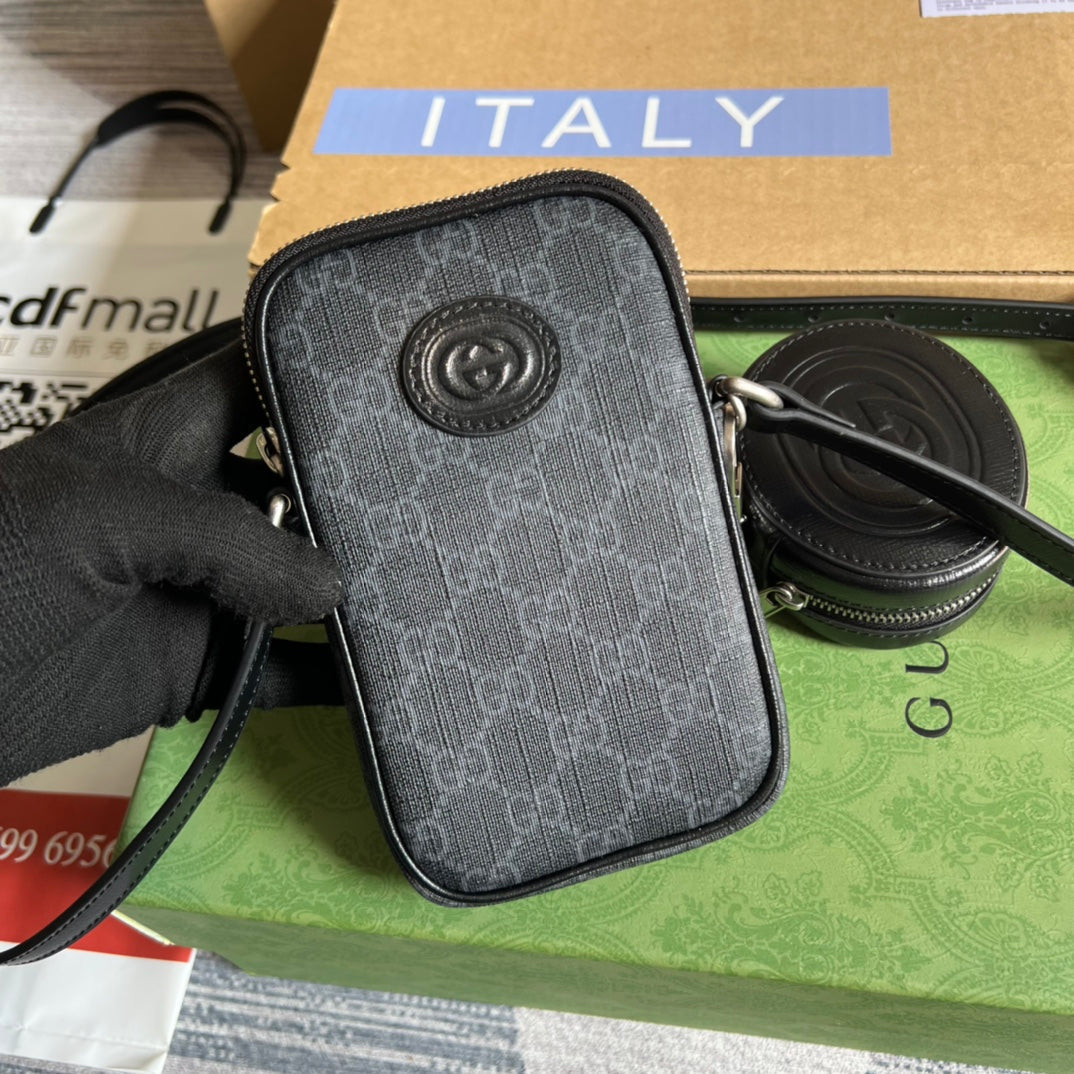 OPHIDIA MESSENGER BAG 35 IN GREY BLACK GG CALFSKIN