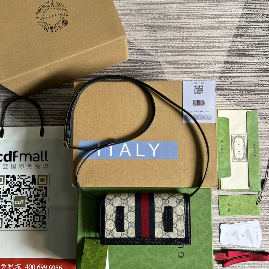 OPHIDIA GG 19 ZIP AROUND WALLET DARK BLUE CANVAS AND BLACK CALFSKIN