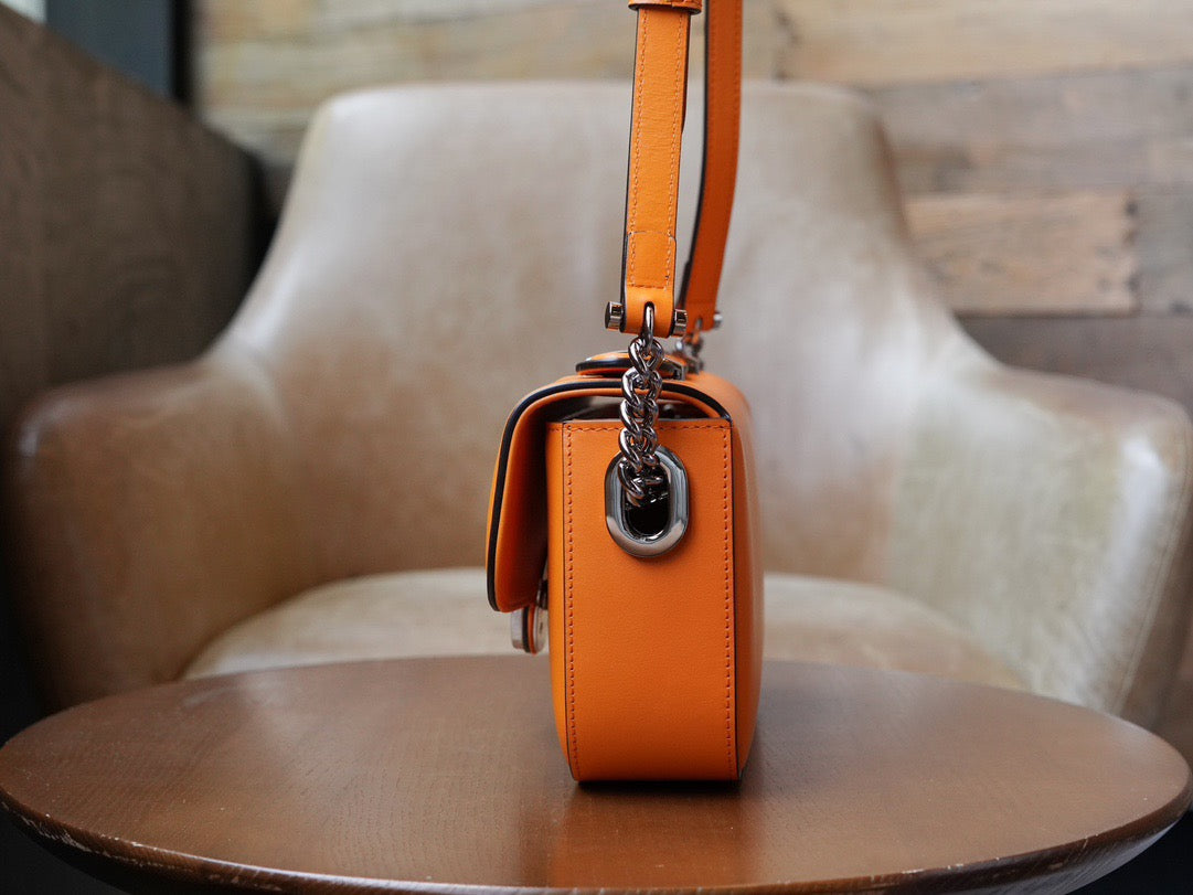 GO SMALL SHOULDER BAG 21.5 IN DARK GREY BROWN CALFSKIN