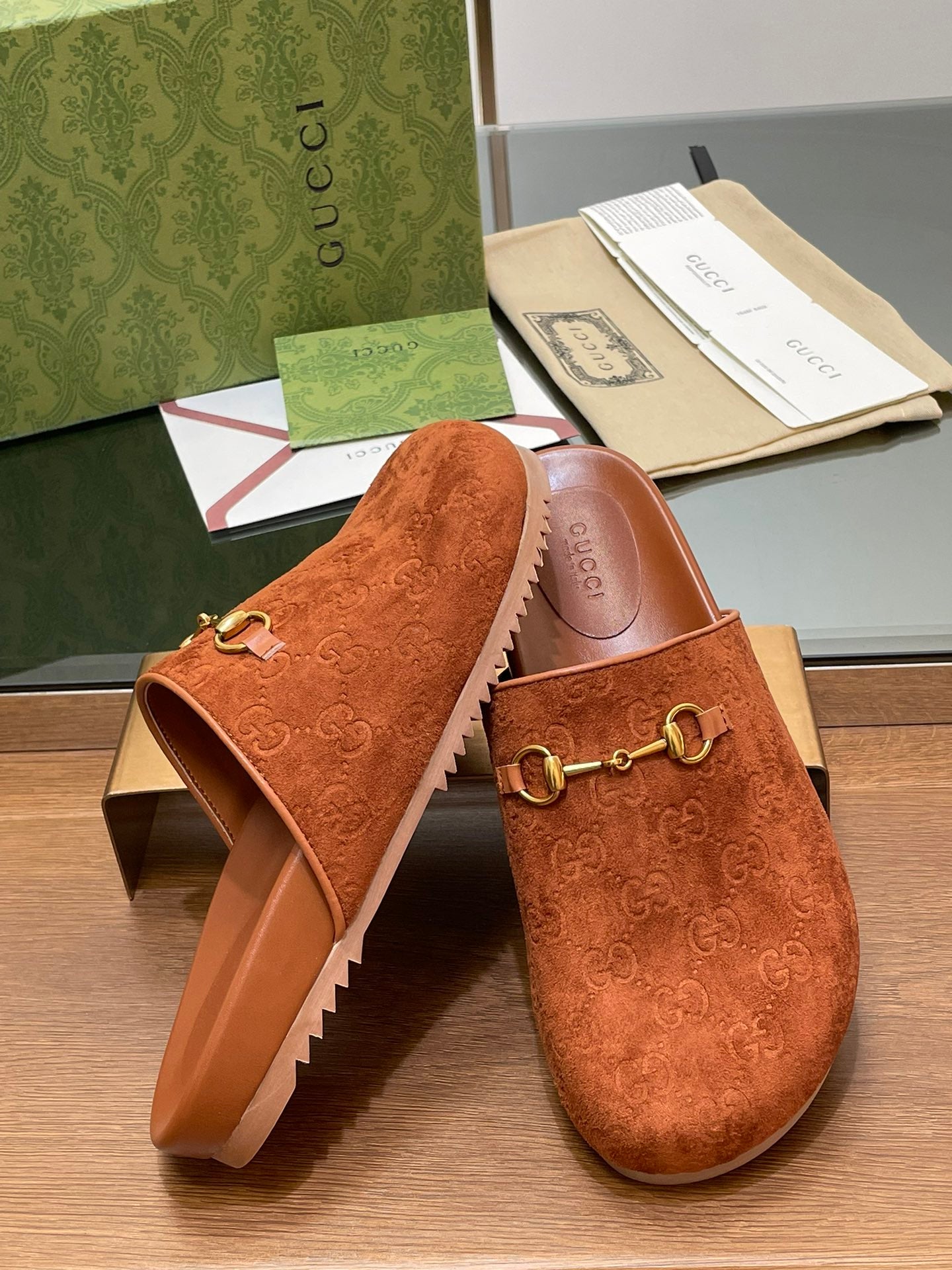 • Material: Embossed suede and sheepskin lining