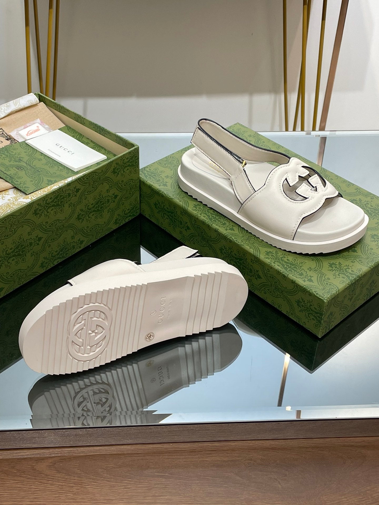 GG INTERLOCKING G CUT OUT SANDAL WHITE LAMBSKIN