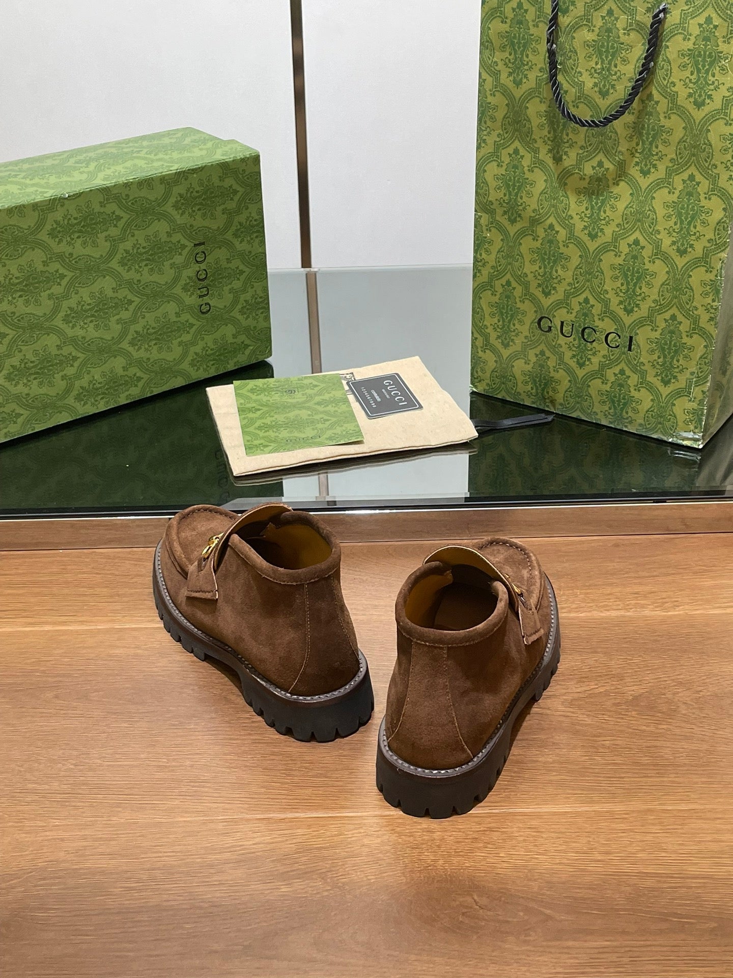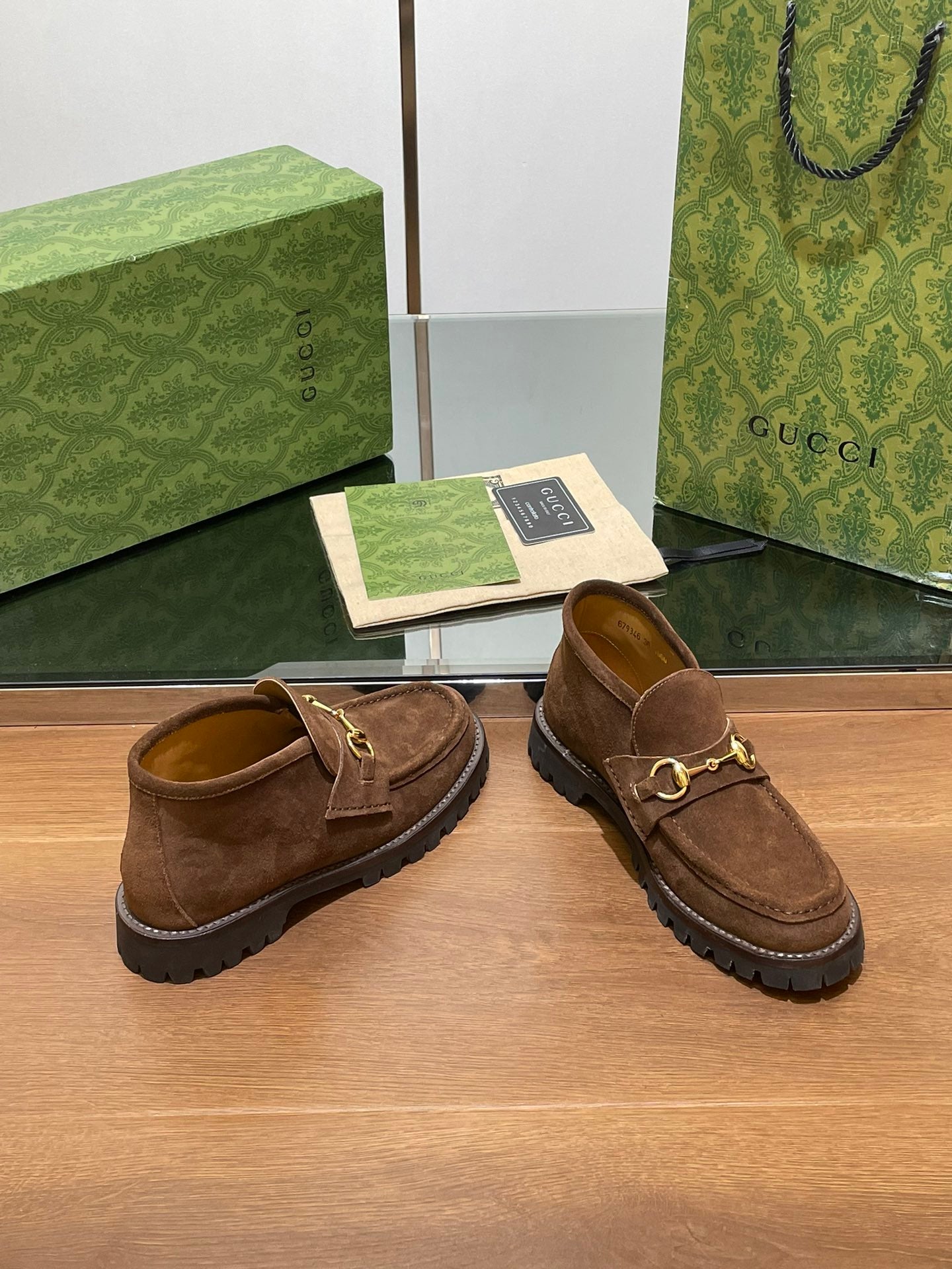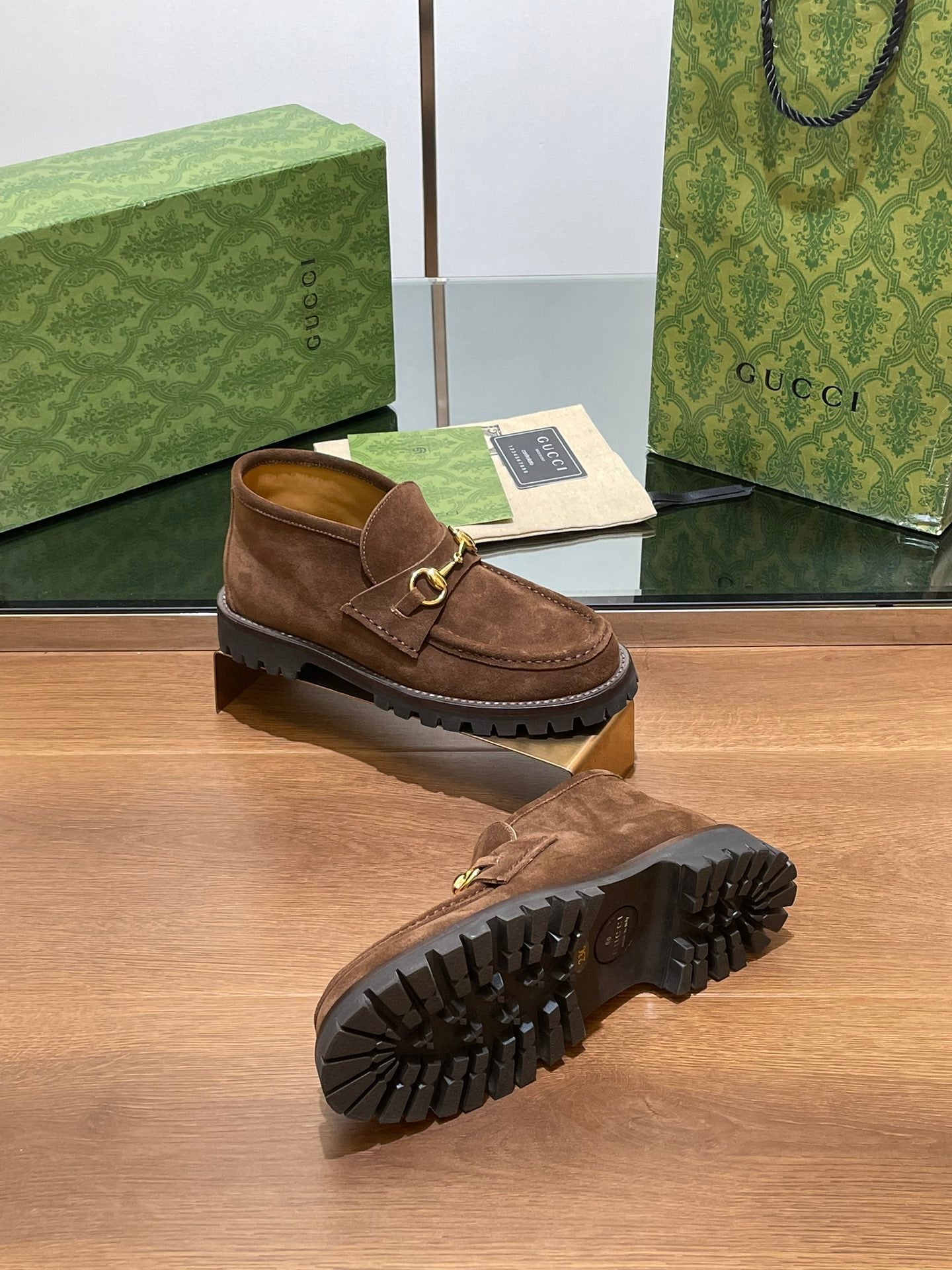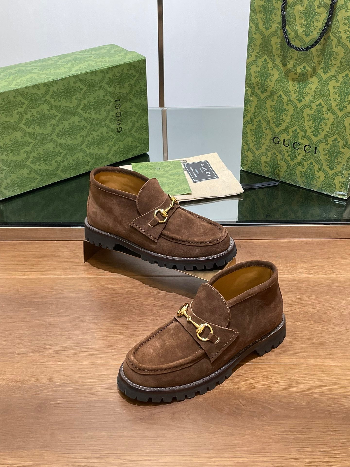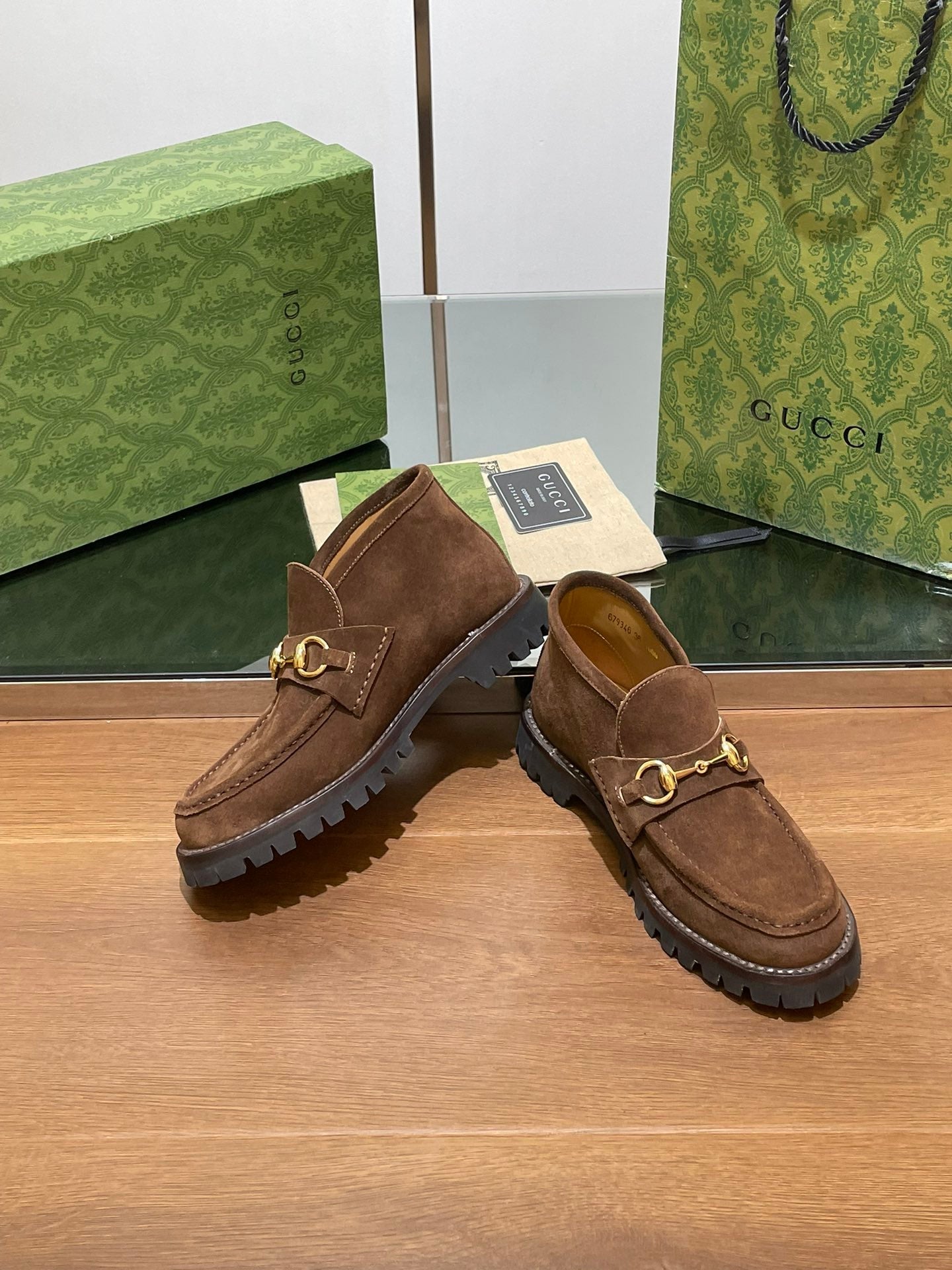 GG WOMEN'S HORSEBIT ANKLE BOOT IN DARK BROWN SUEDE