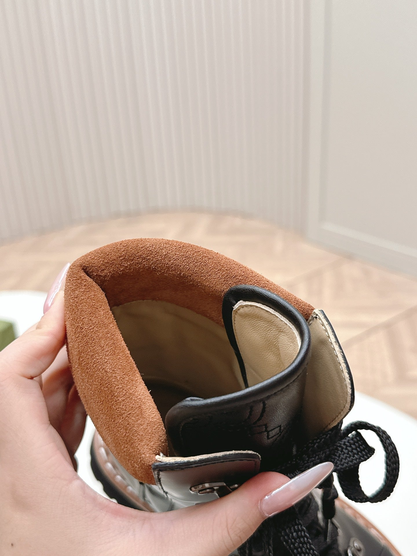 • Material: Embossed calfskin and suede