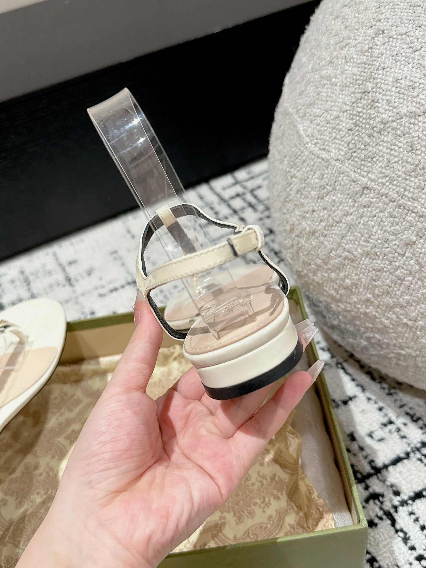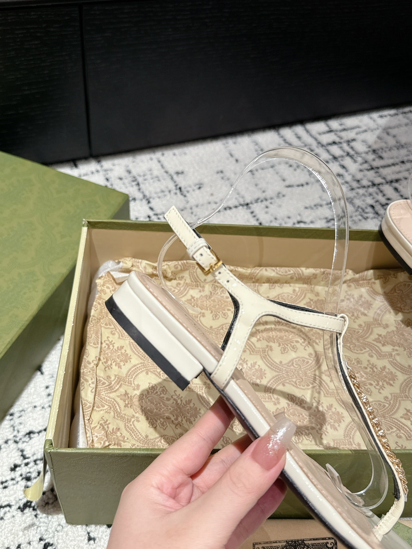 THONG SANDAL IN WHITE CALFSKIN WITH GOLD HARDWARE