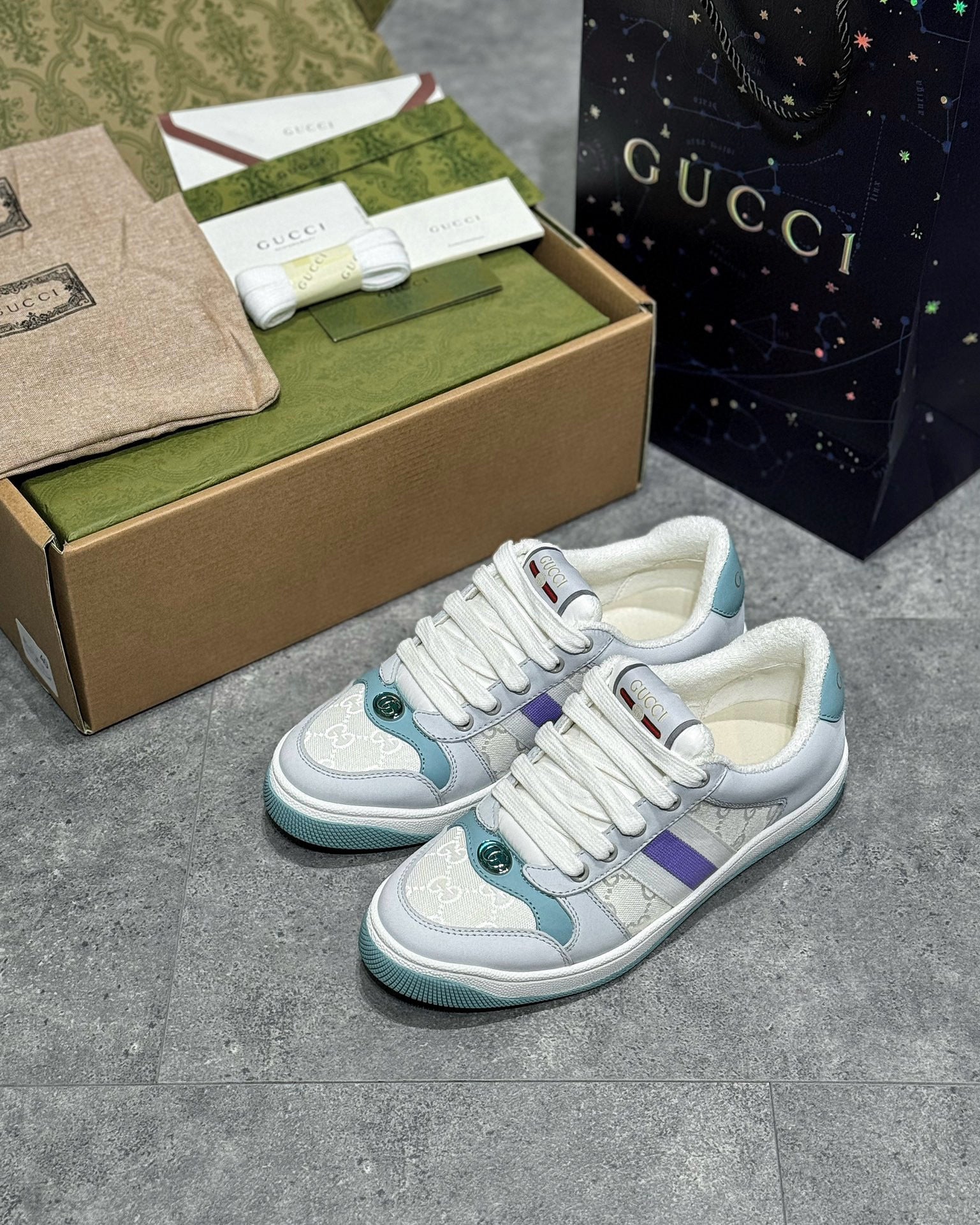 GG Gucci Screener Sneaker White Sunset Purple