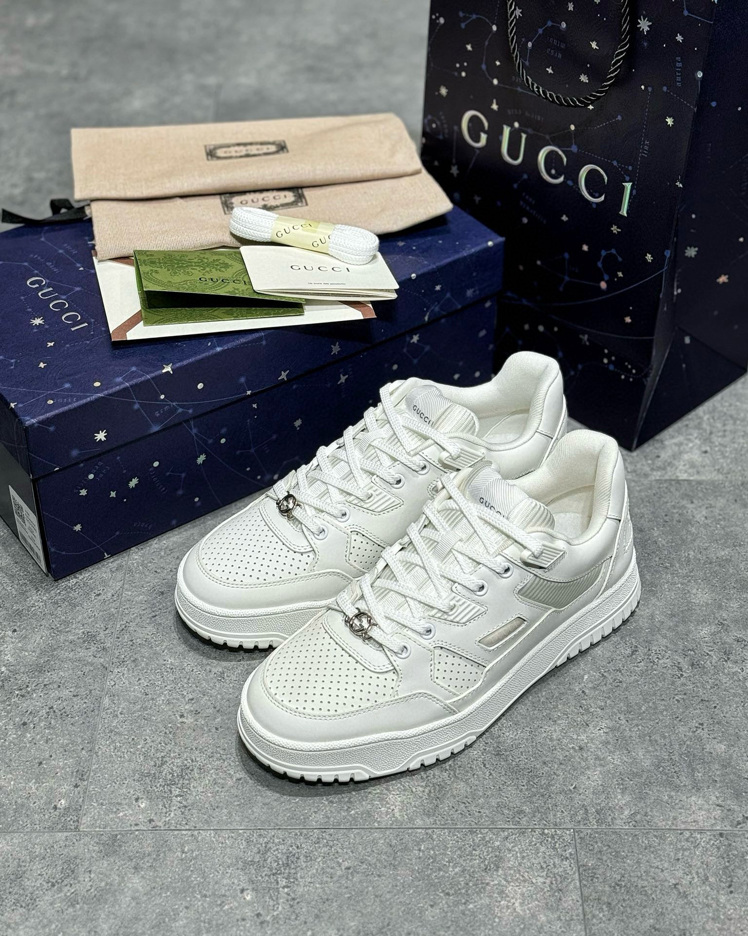 GG COUPLE TRAINER WHITE CALFSKIN WITH DONALD DUCK ICON