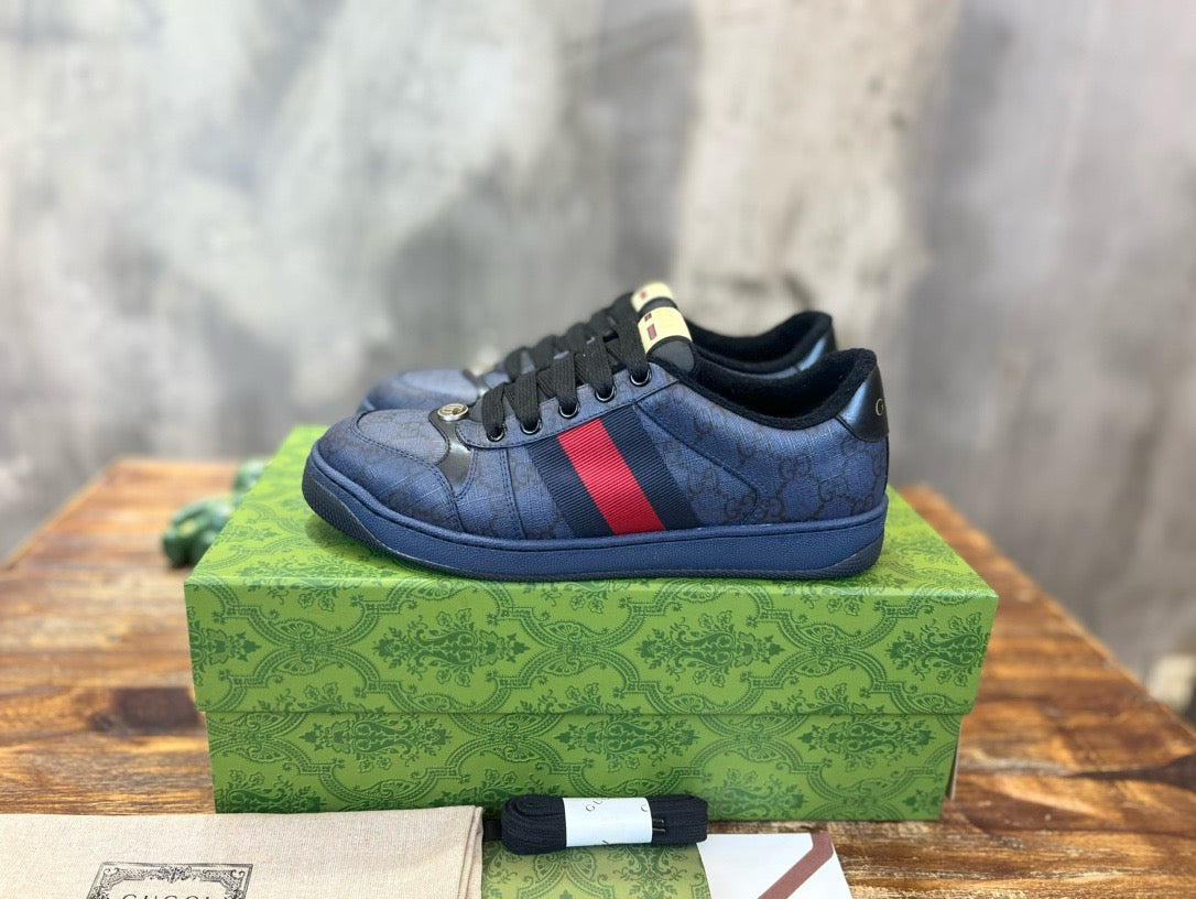 GG RHYTON TRAINER BLACK CALFSKIN WITH WHITE LOGO