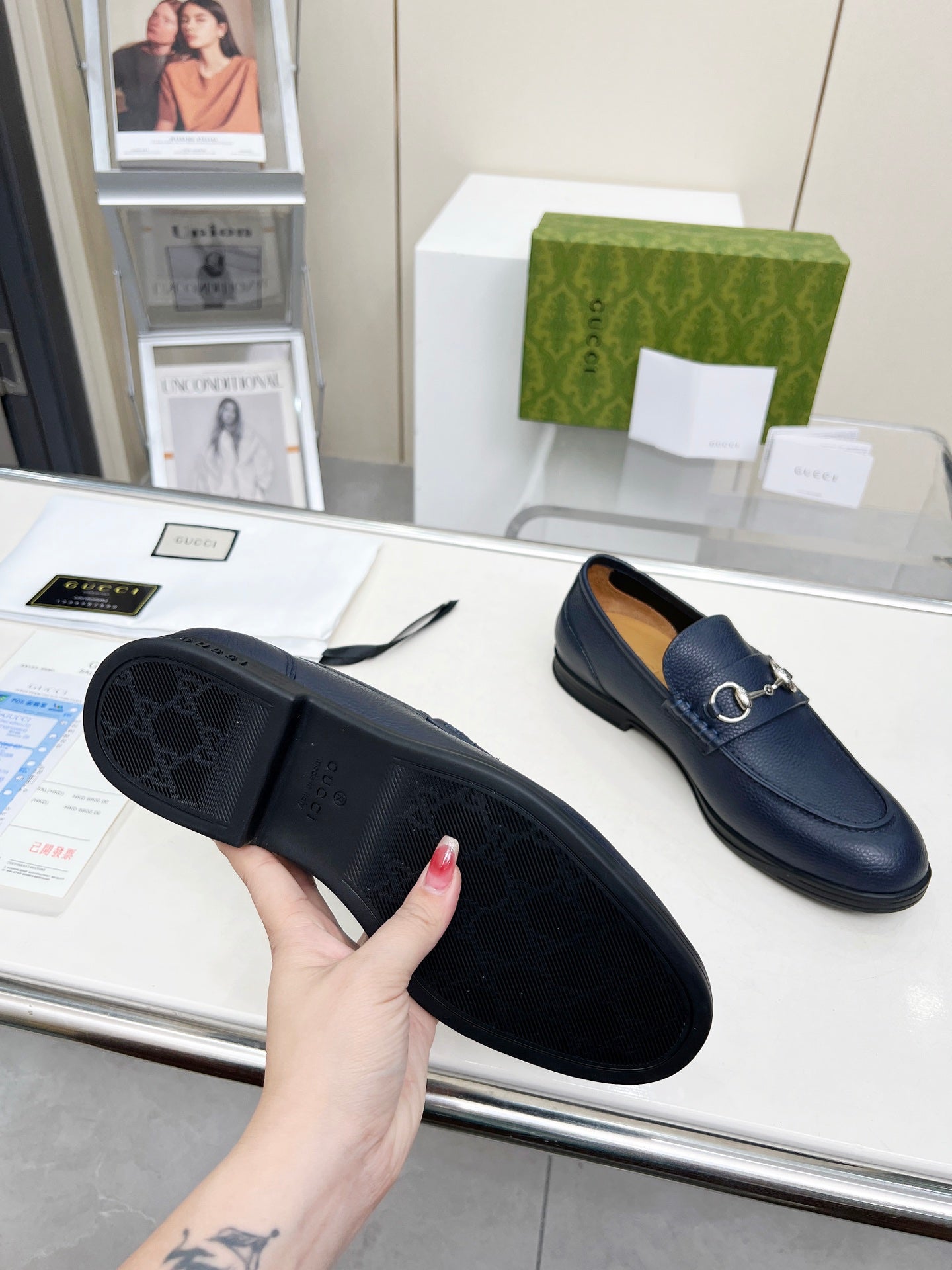 LOAFERS WITH SILVER HARDWARE IN NAVY BLUE GRAINED CALFSKIN