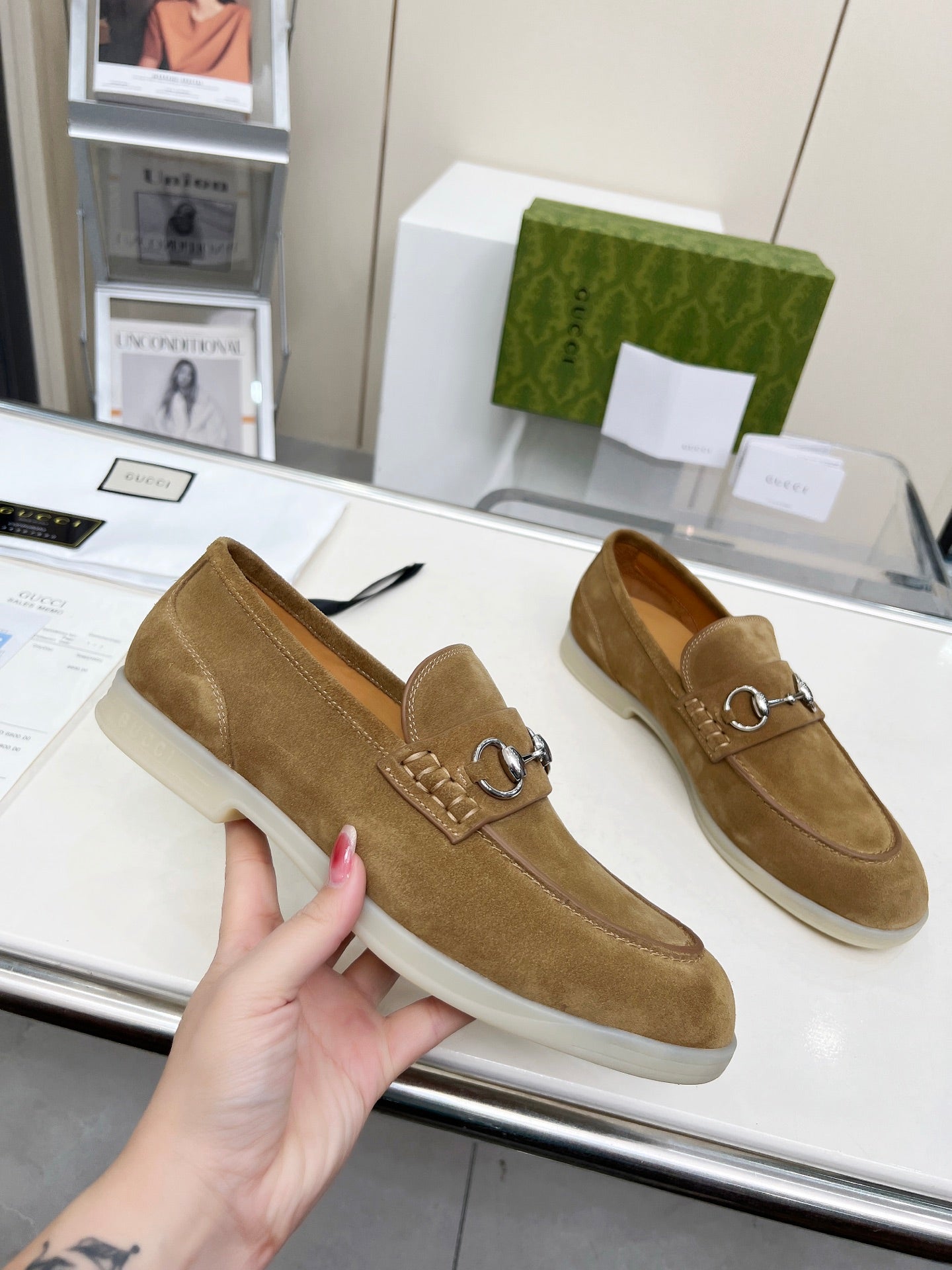 LOAFERS WITH SILVER HARDWARE IN CIDER BROWN SUEDE
