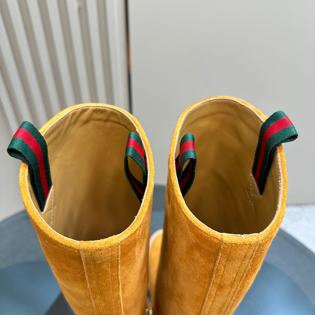 SLIM HORSEBIT KNEE BOOTS WITH WEB IN HONEY ORANGE SUEDE