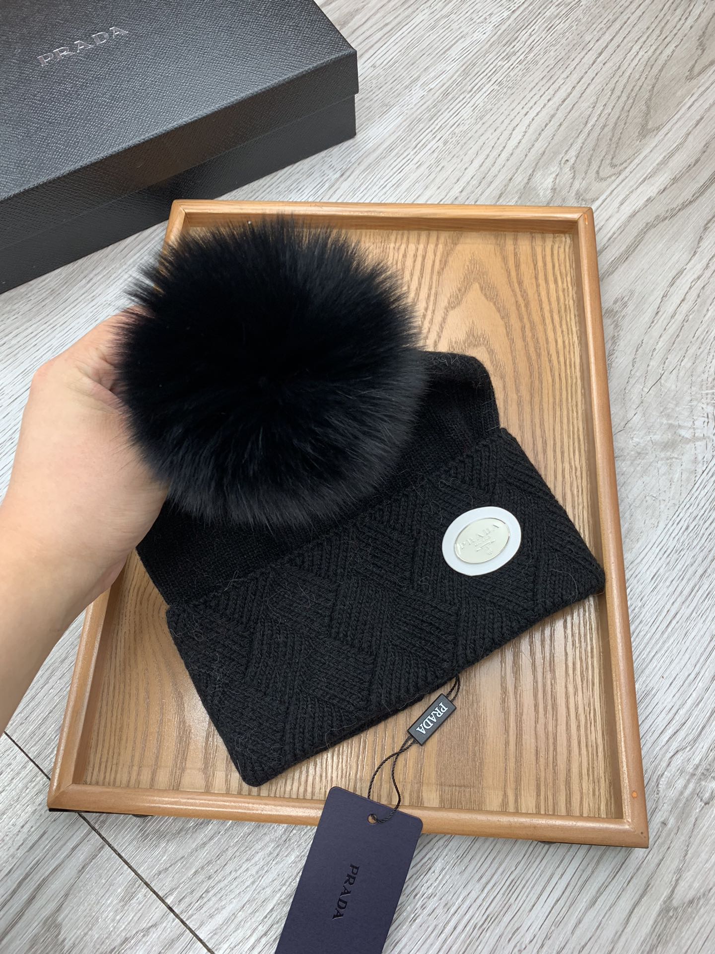 BEANIE HAT IN BLACK WOOL AND RABBIT FUR 346717
