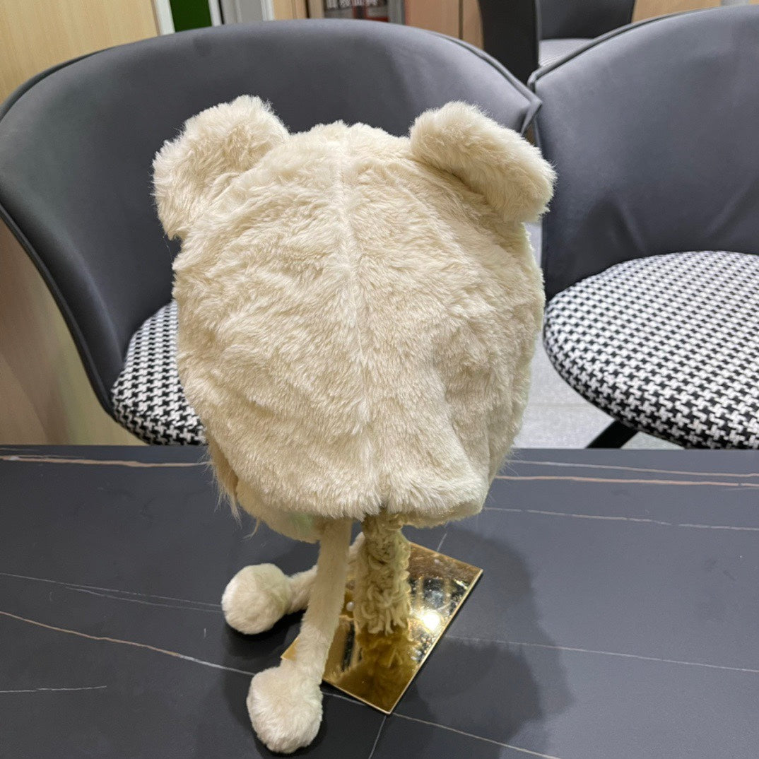 • Women's Hat with plush material and pom-pom design, featuring cute bunny ears, ideal for winter.