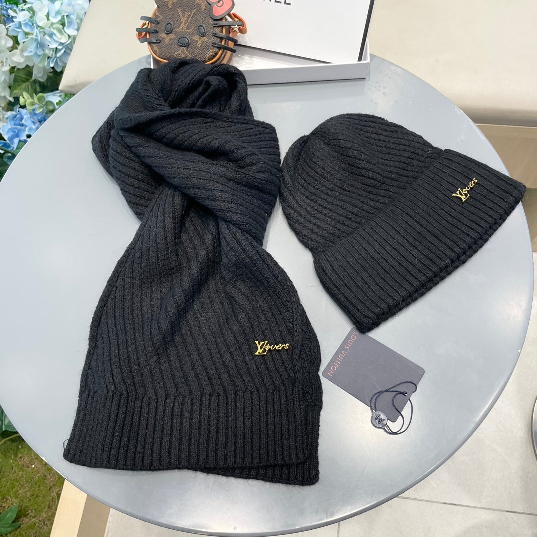 SET SCARF AND HAT IN BLACK WOOL 436222