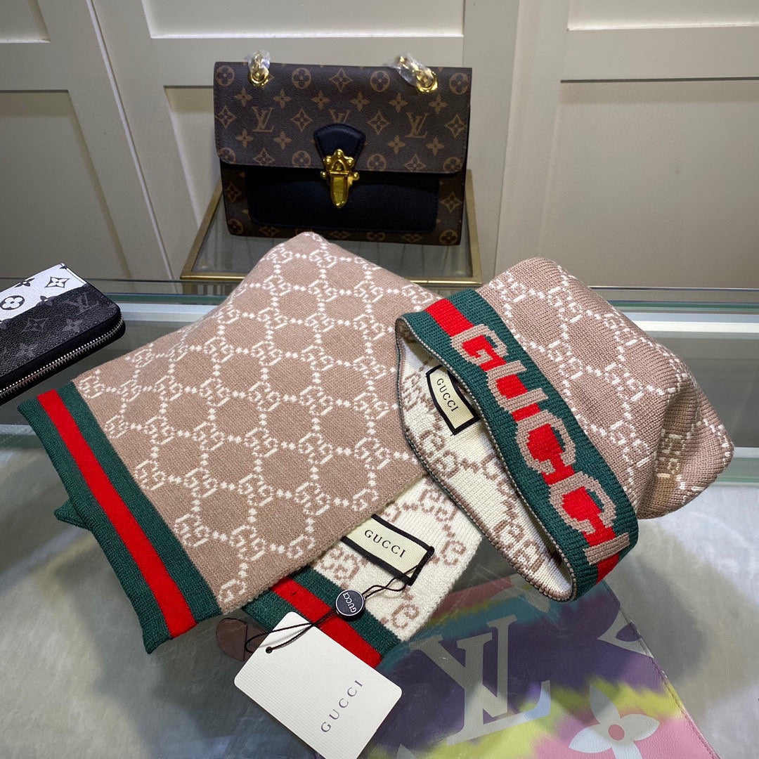 - SET SCARF AND HAT IN CAMEL BROWN MONOGRAM CASHMERE 349666