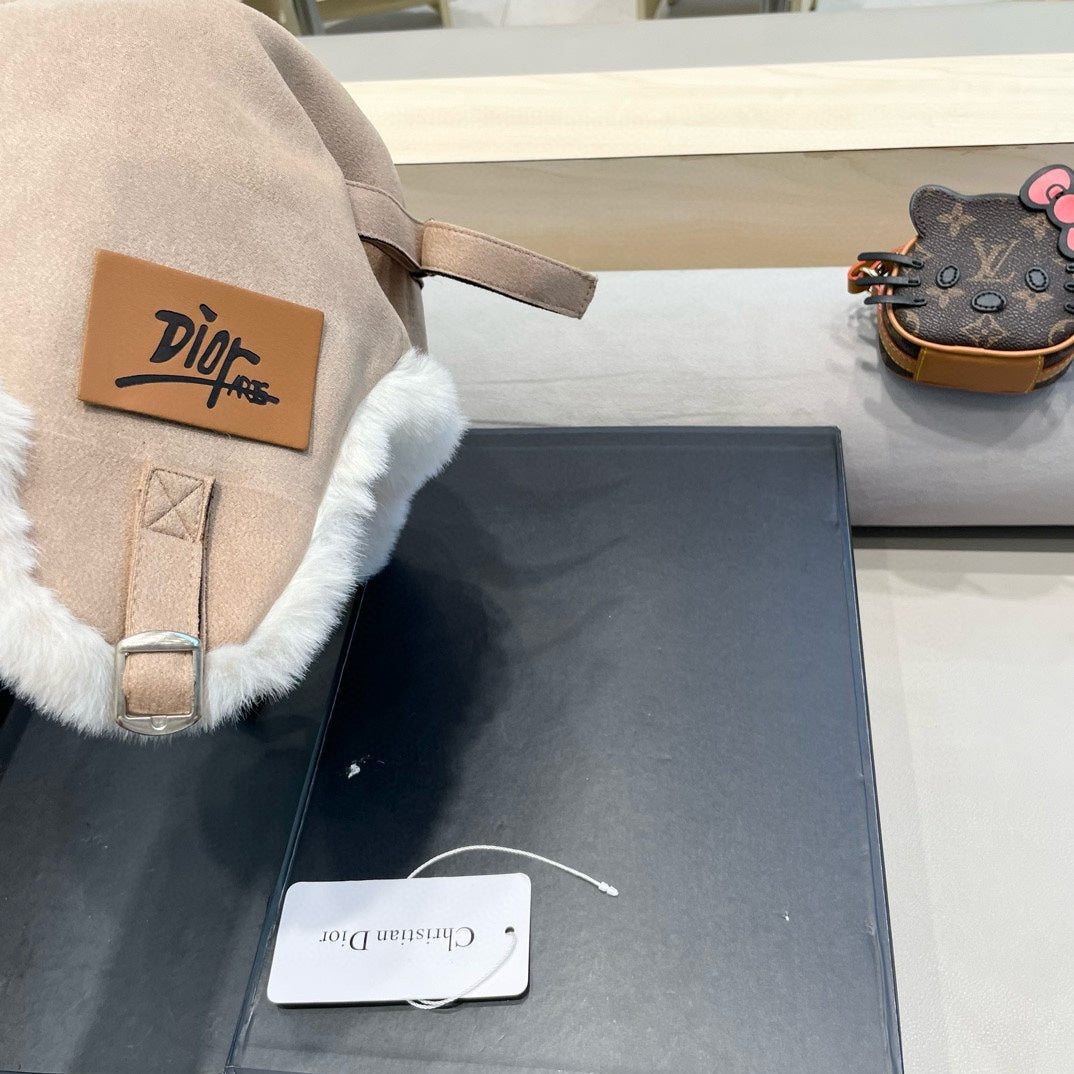TRAPPER HAT IN KHAKI BEIGE VELVET AND RABBIT FUR 431382