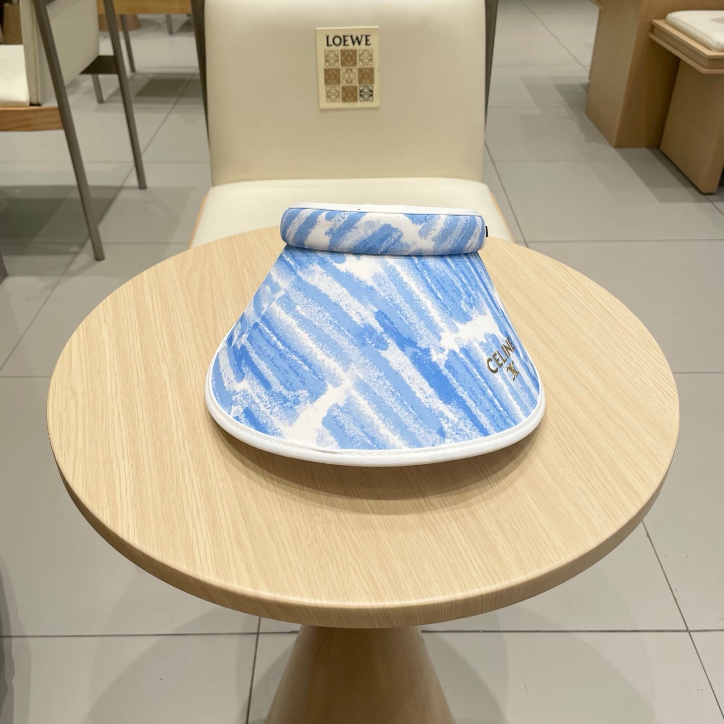 VISOR HAT MODEL 652201 IN BLUE AND WHITE FABRIC