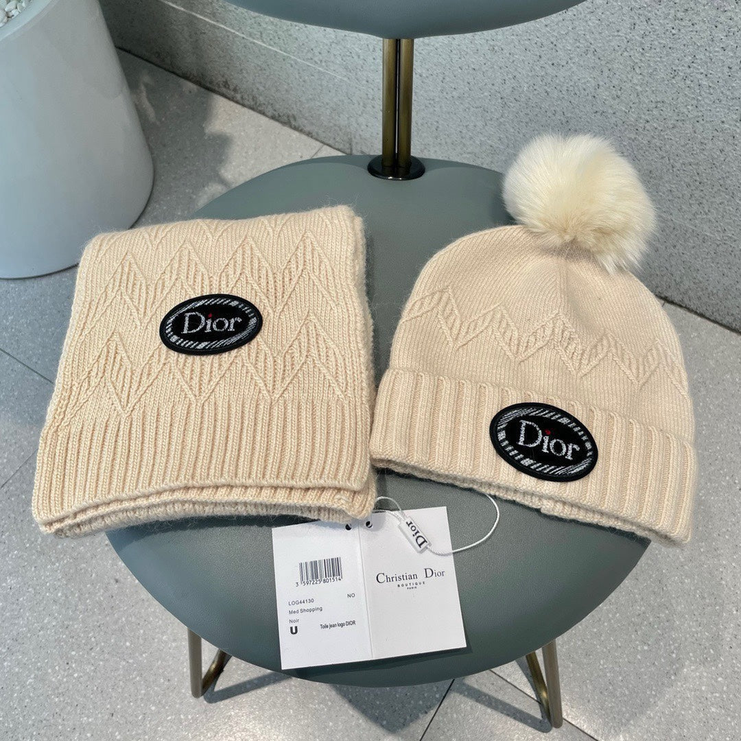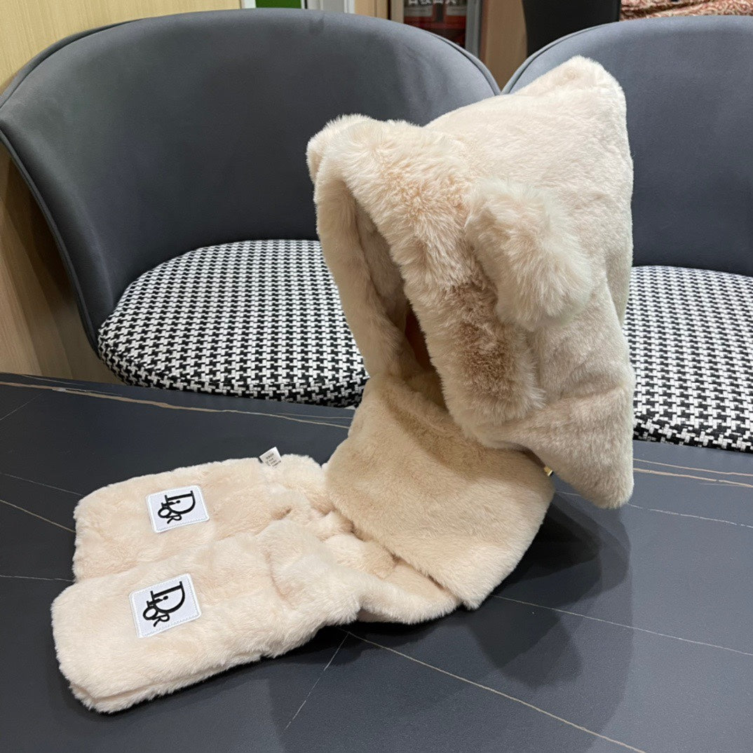 SET SCARF AND HAT IN BEIGE WOOL AND FOX FUR 414798