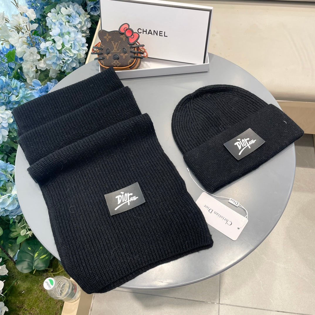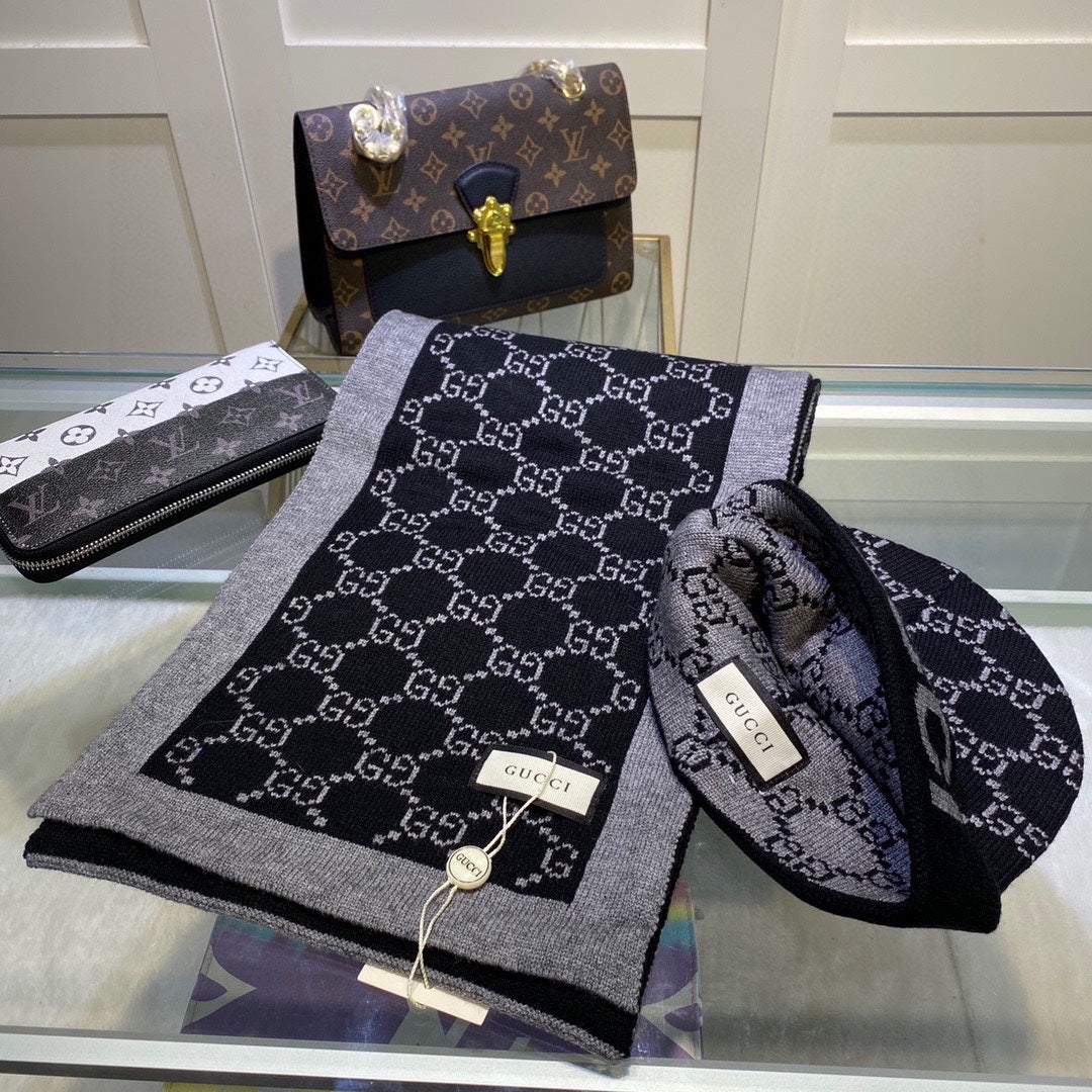 SET CLASSIC SCARF AND HAT IN BLACK MONOGRAM CASHMERE 200522