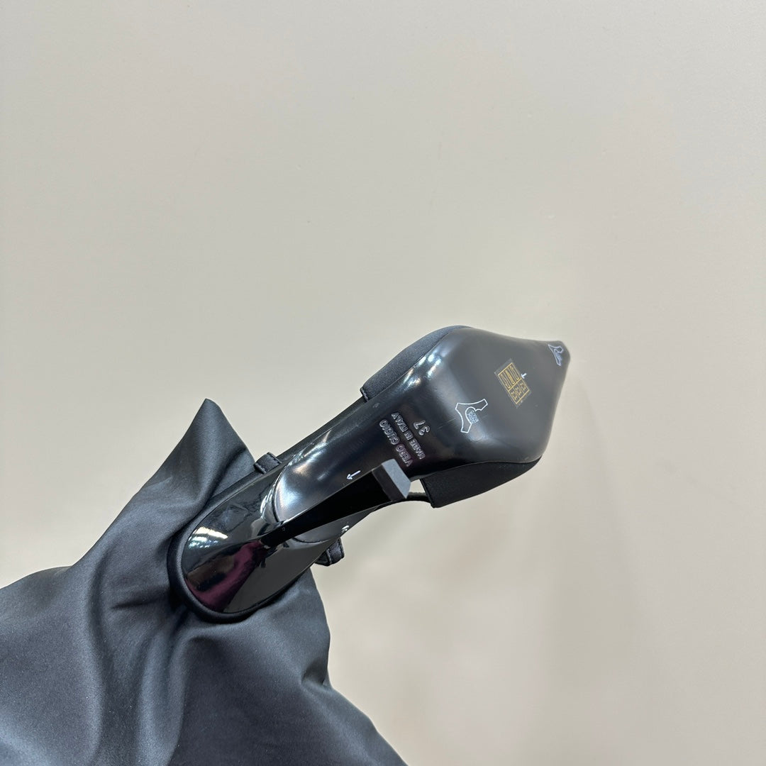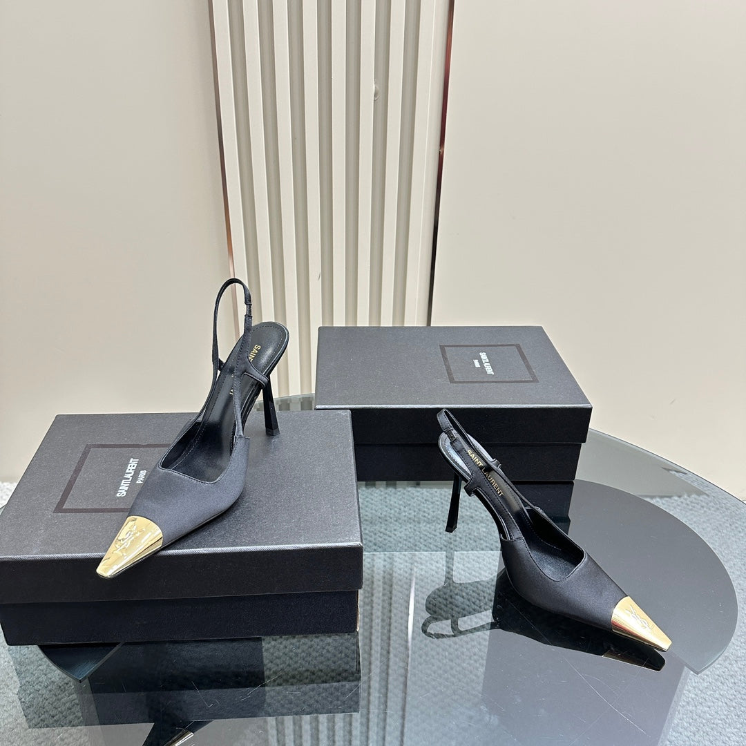 SL JEANNE SLINGBACK PUMPS BLACK SATIN