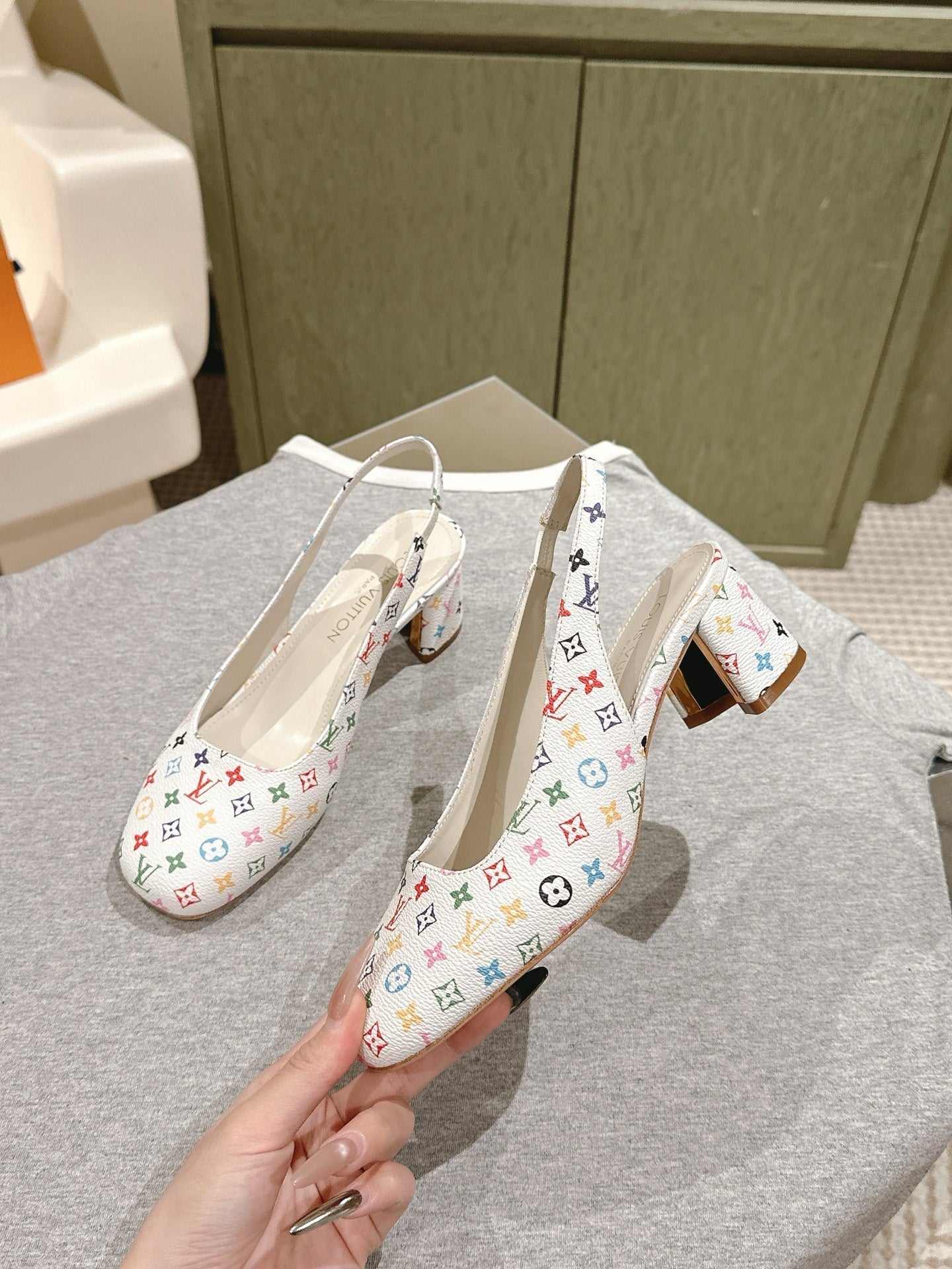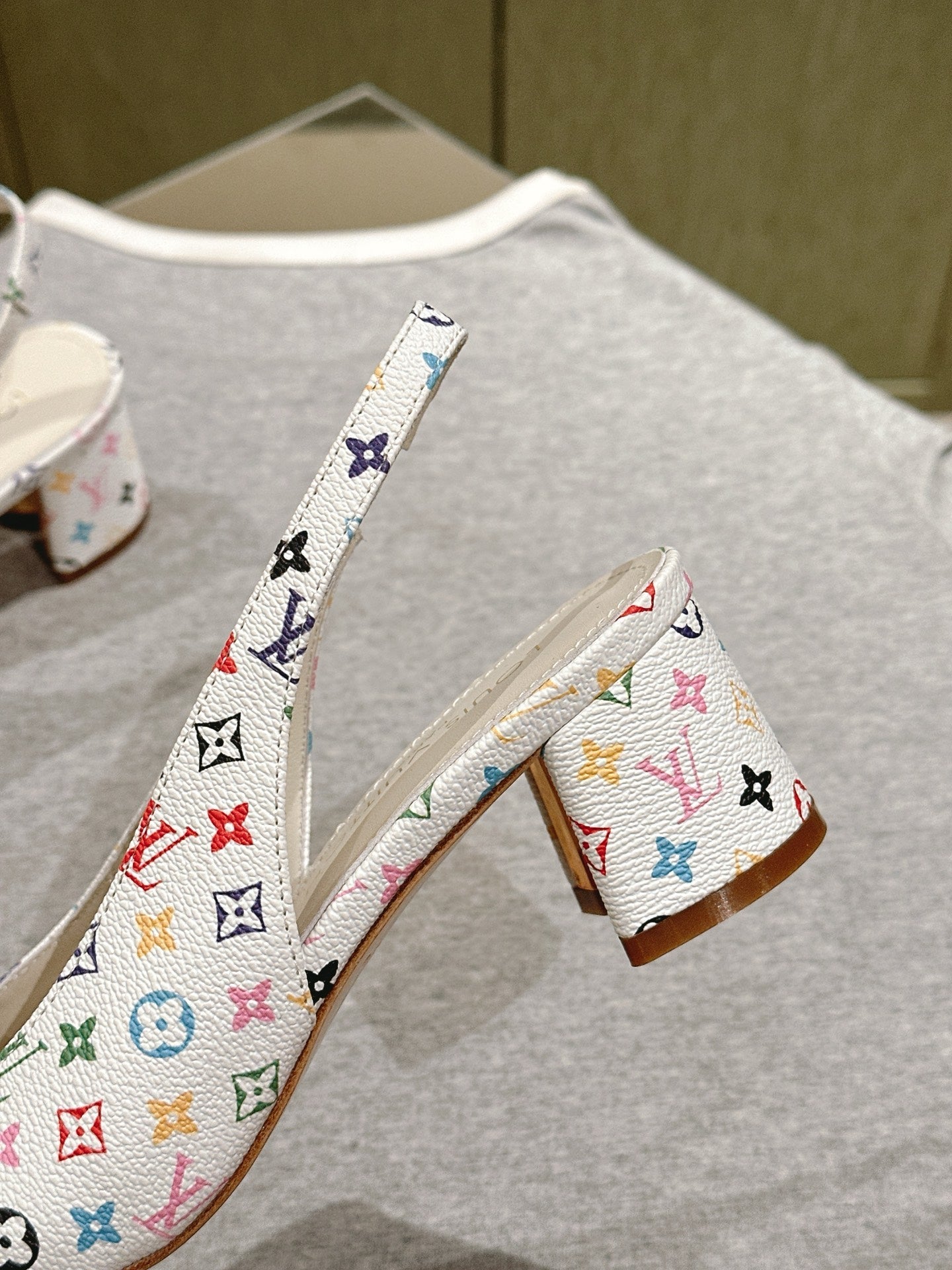 • SWING SLINGBACK PUMP 55 MM IN WHITE MONOGRAM CALFSKIN