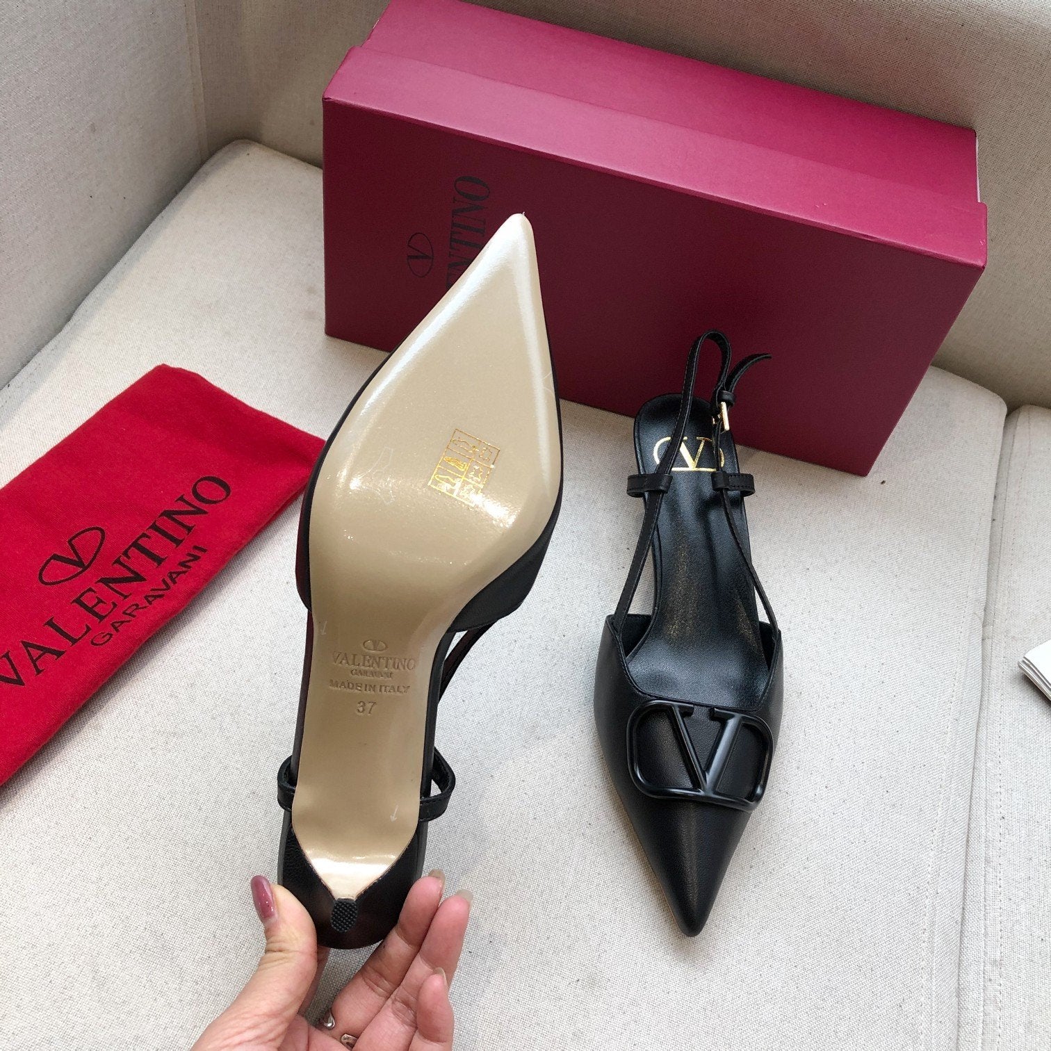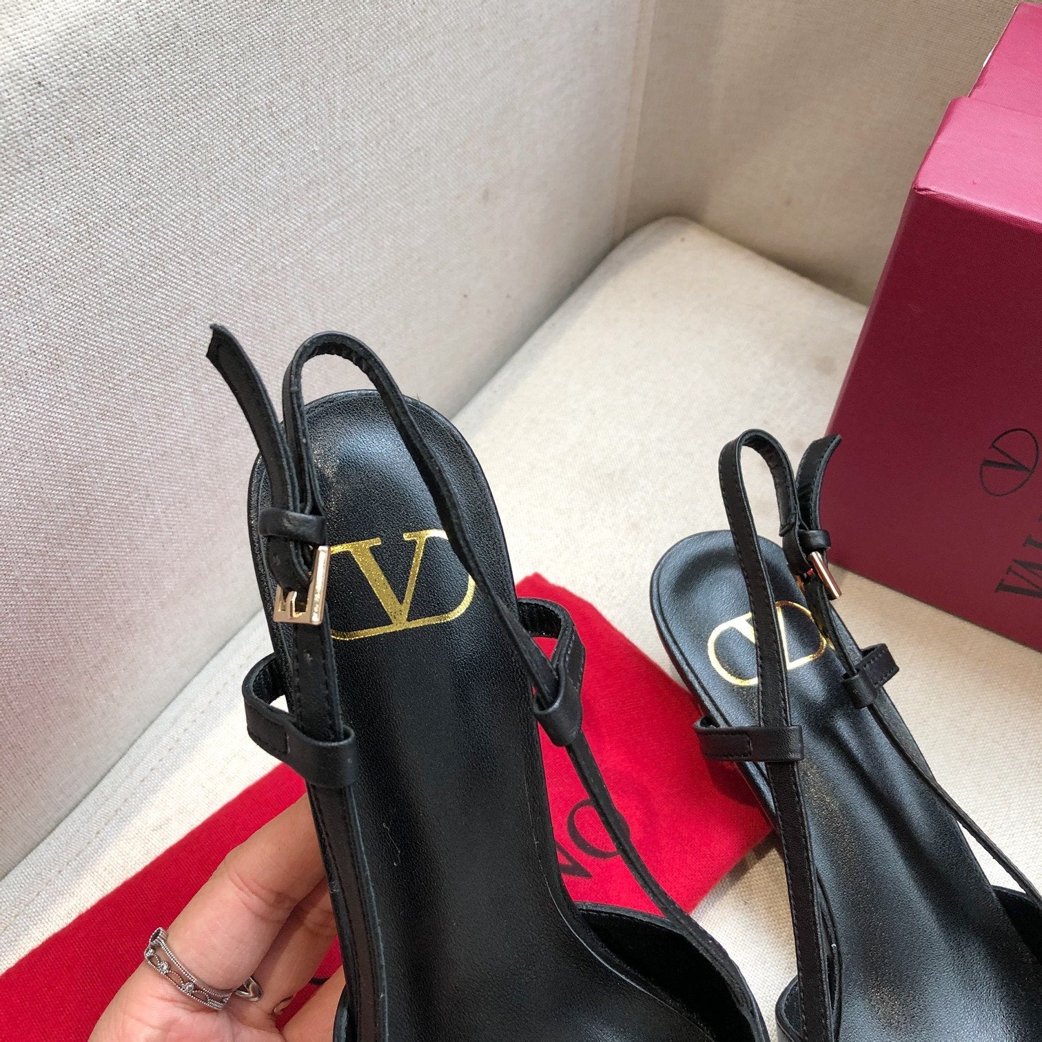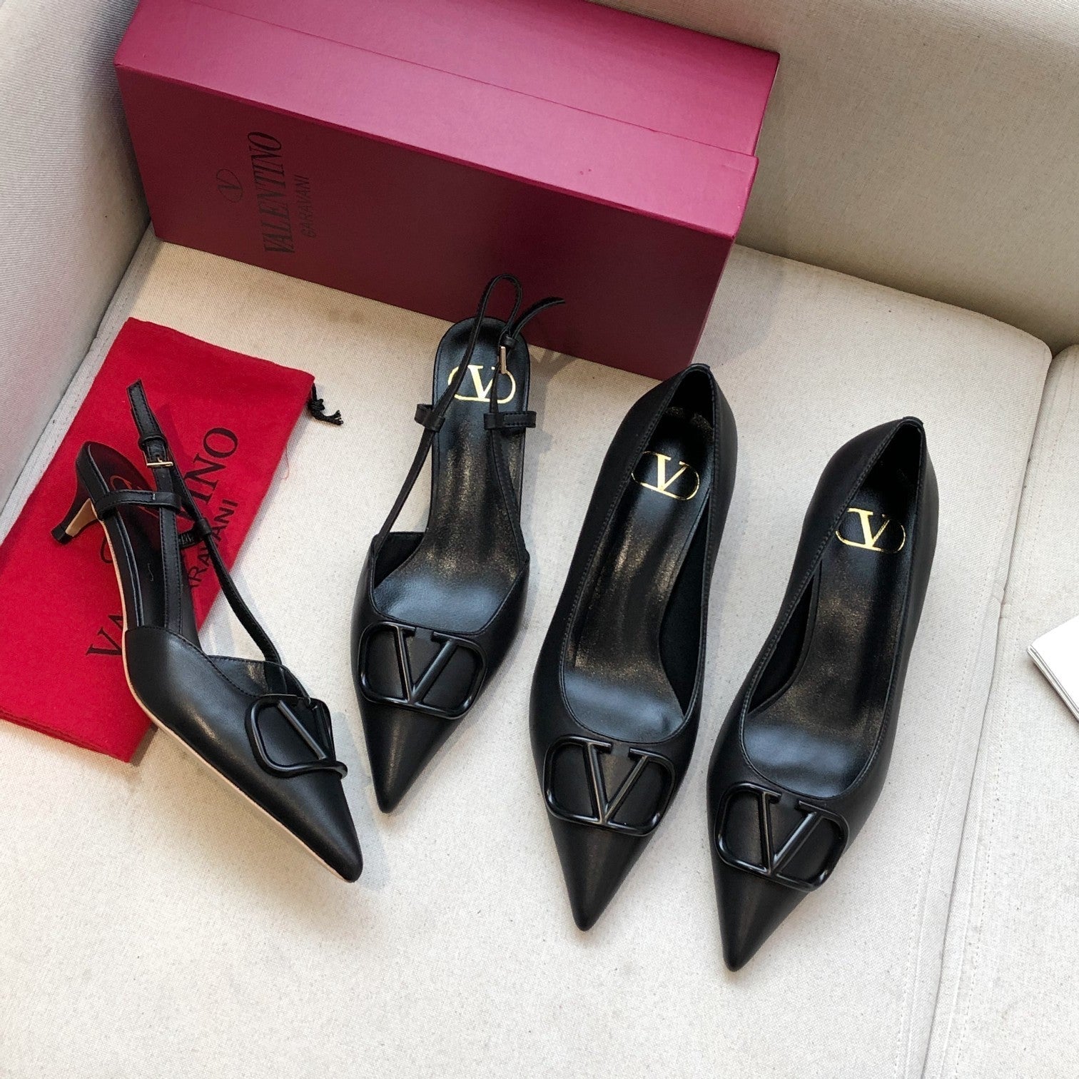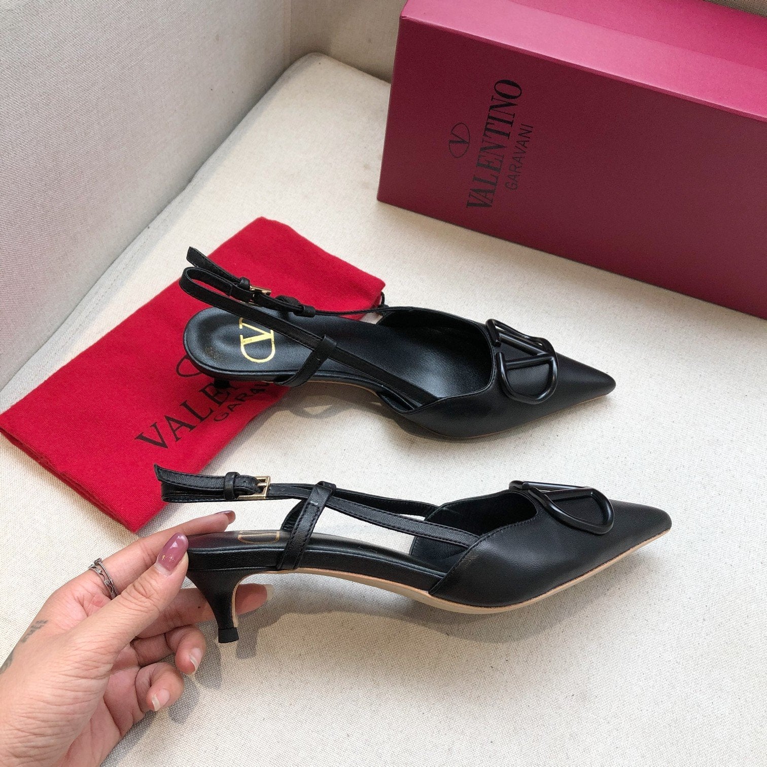 • VLOGO SIGNATURE BLACK CALFSKIN HIGH SLINGBACK PUMP 4 CM