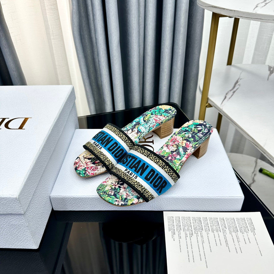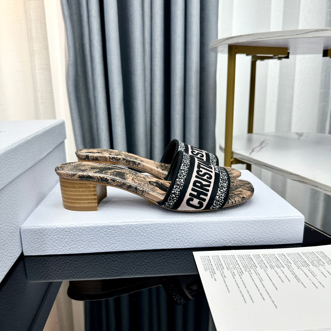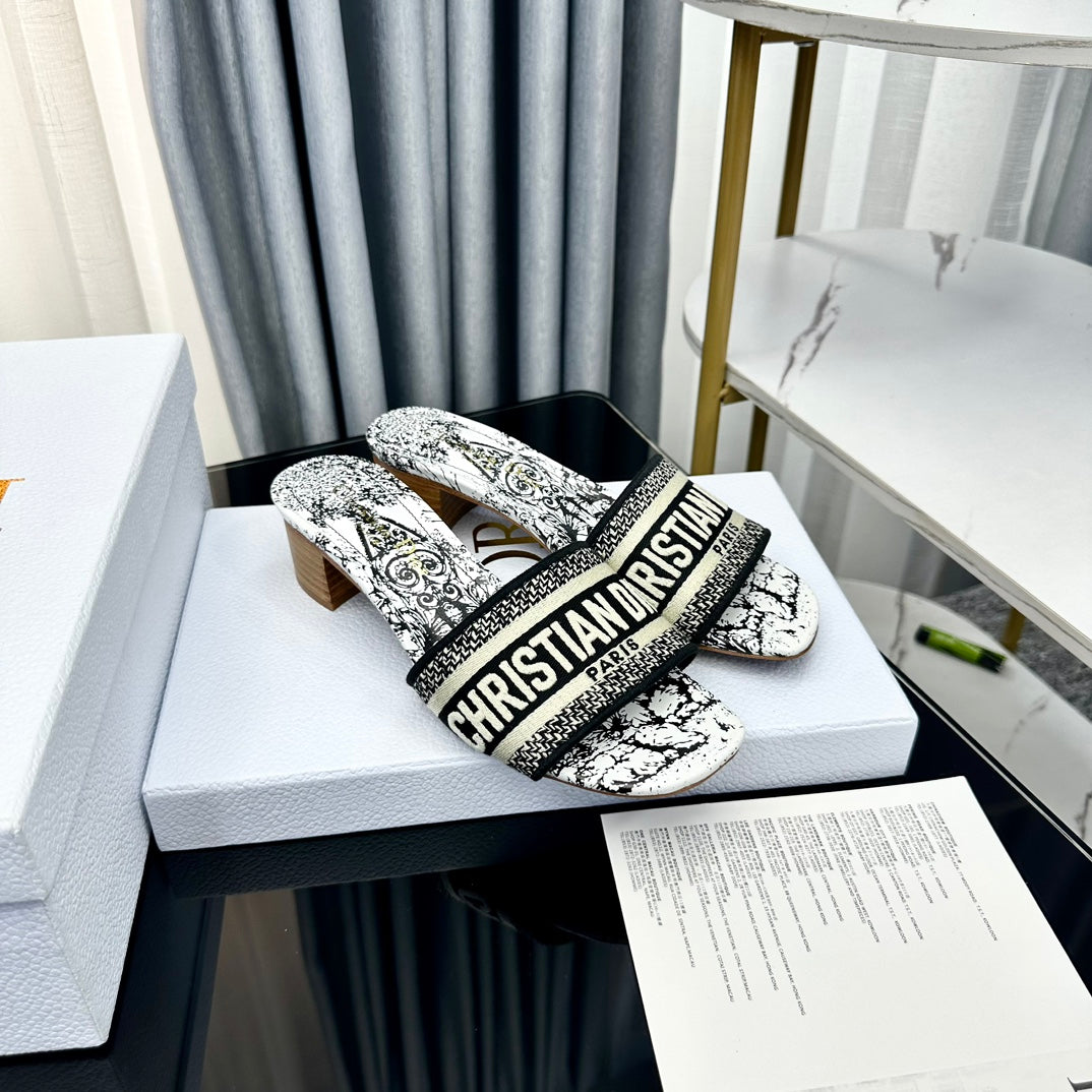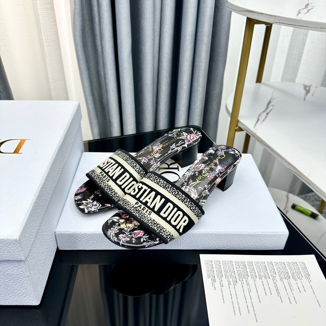 DWAY HIGH HEEL EMBROIDERED SANDAL BLACK CALFSKIN 75 MM