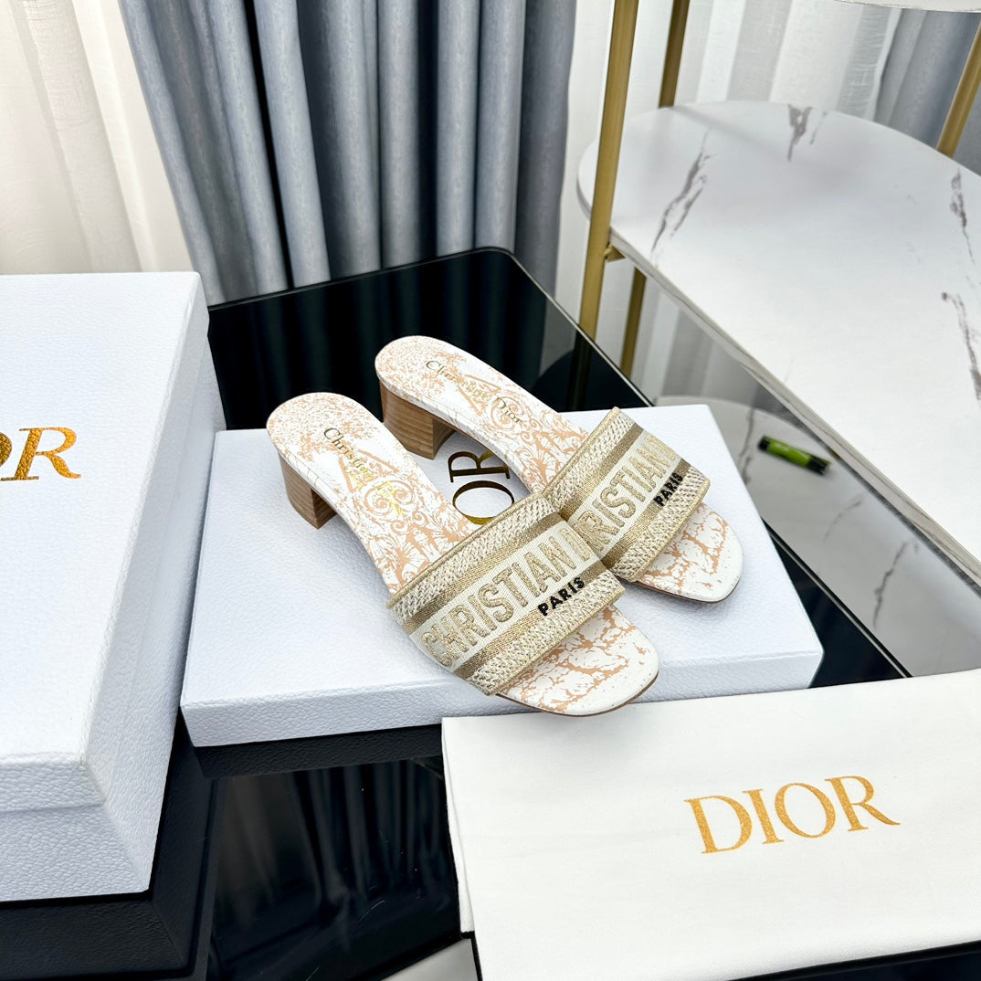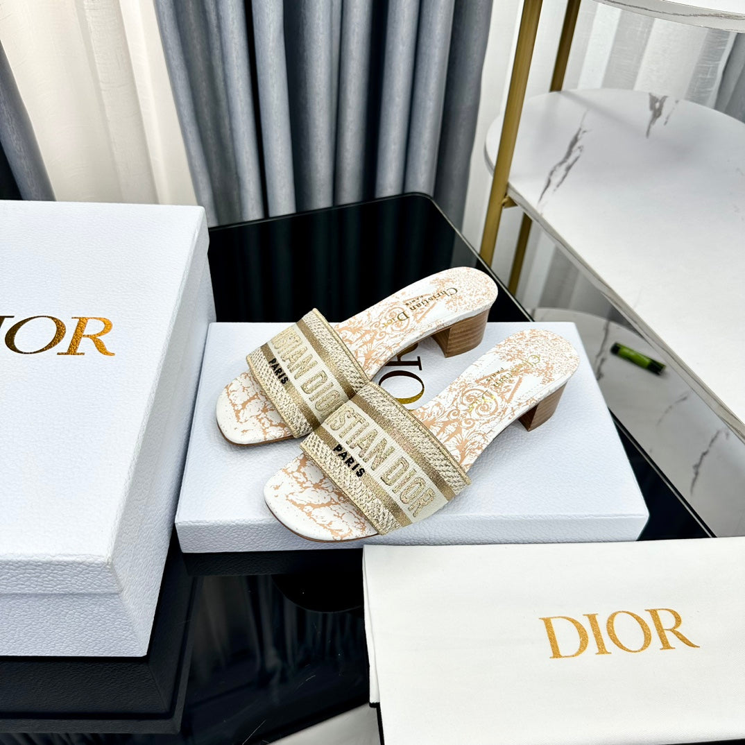 DWAY HEELED SLIDE IN CAMEL BEIGE CALFSKIN WITH GOLD LOGO