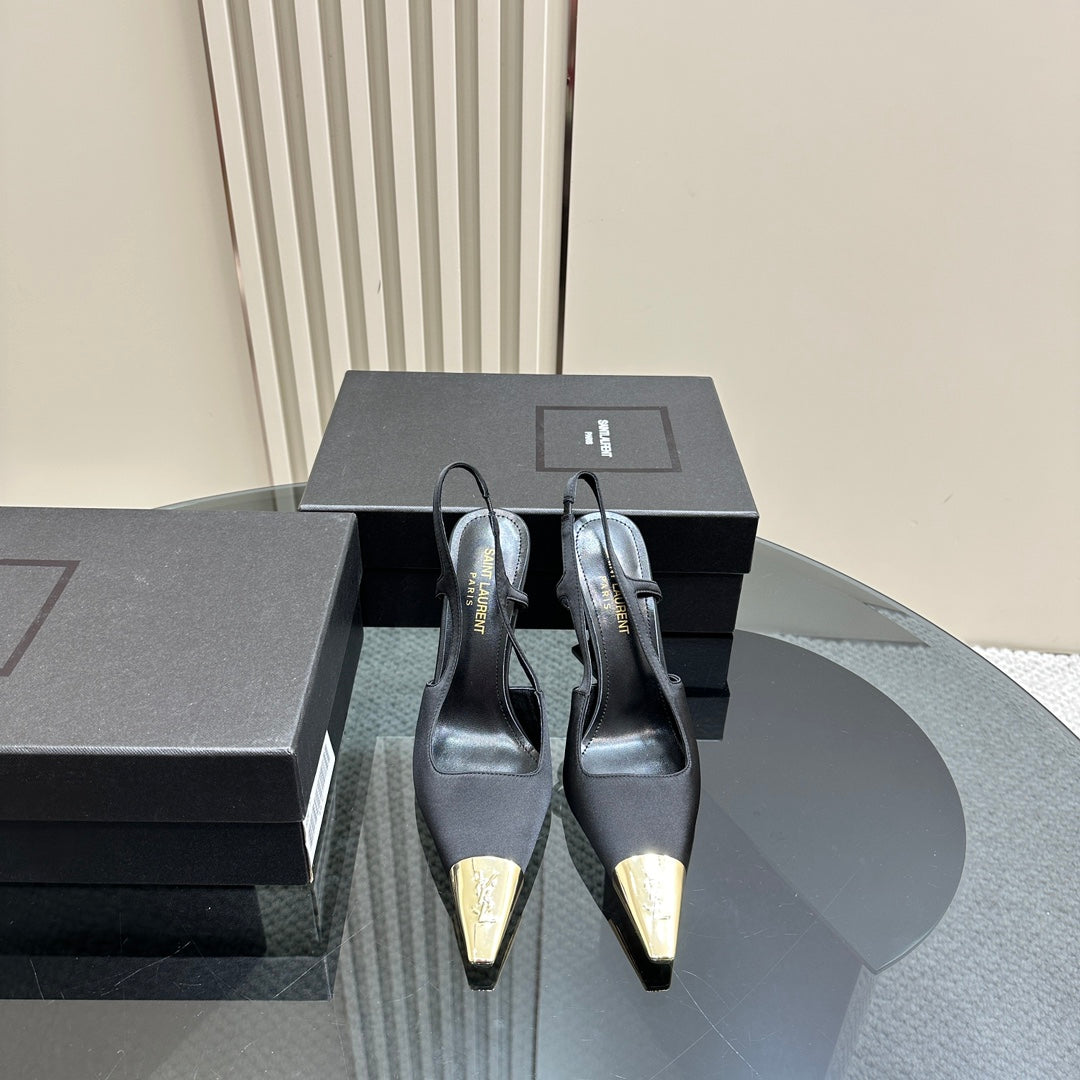 SL JEANNE SLINGBACK PUMPS BLACK SATIN