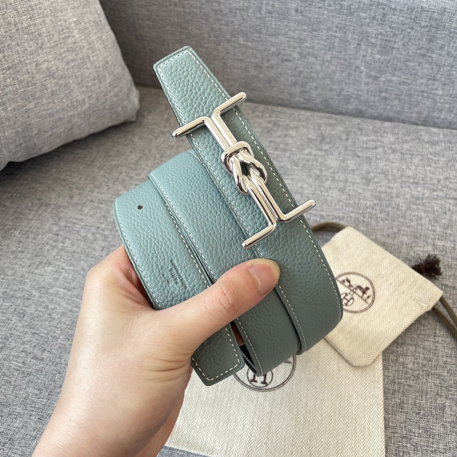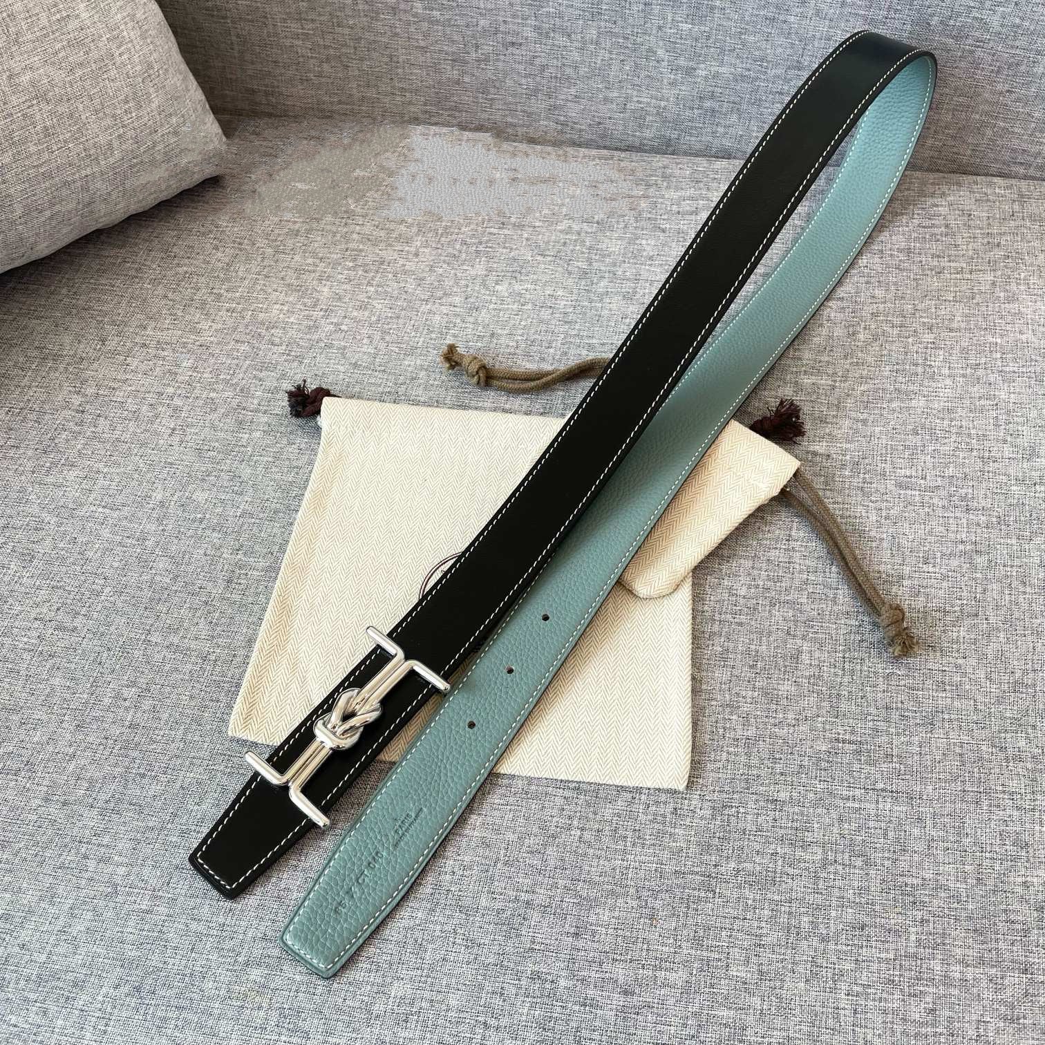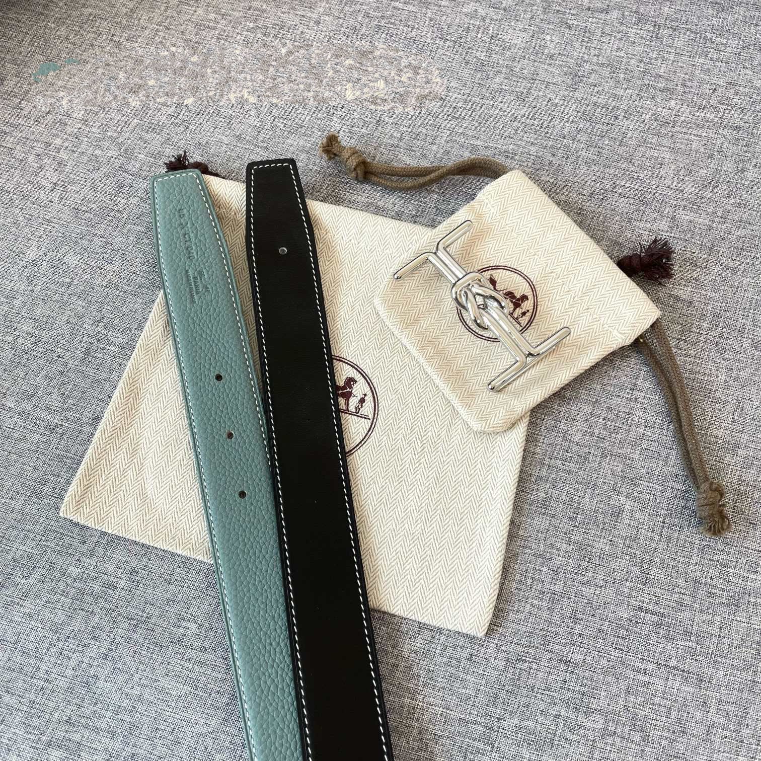 • H Buckle in permabrass plated metal.