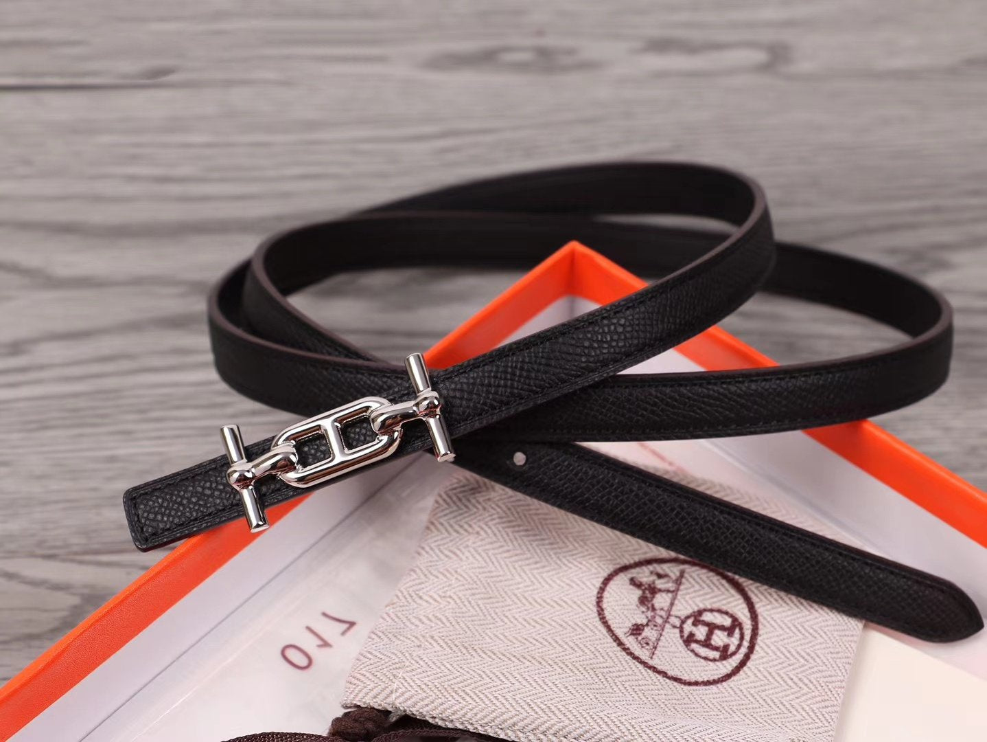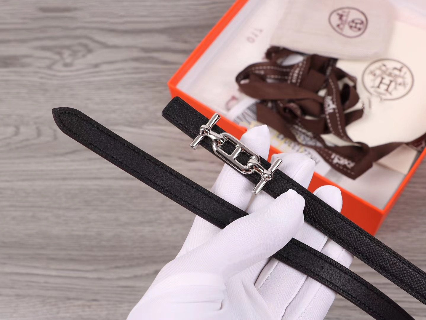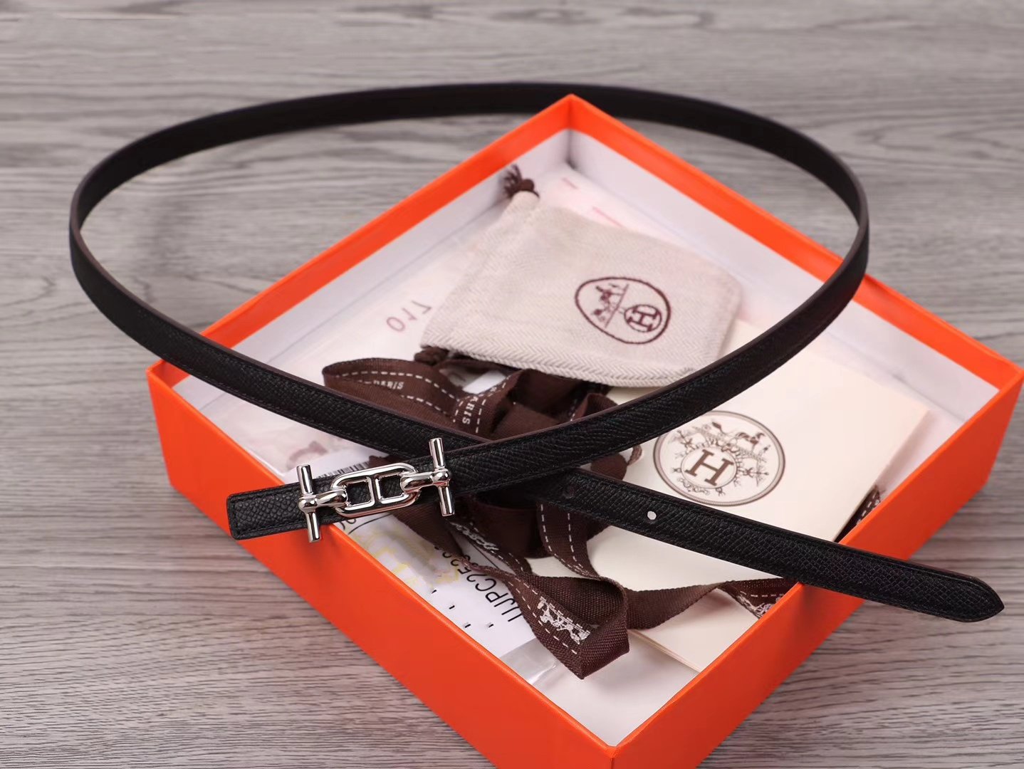 • H Buckle in permabrass plated metal.