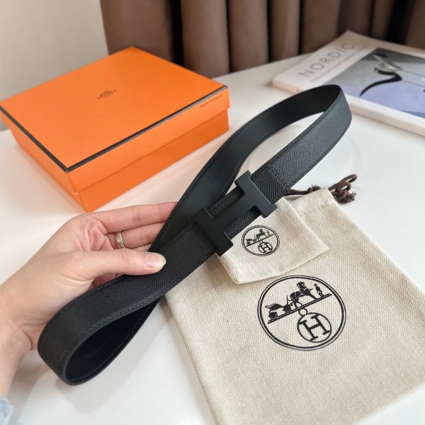 HERM Constance Reversible Belt 32MM in Epsom Leather with Black Buckle
