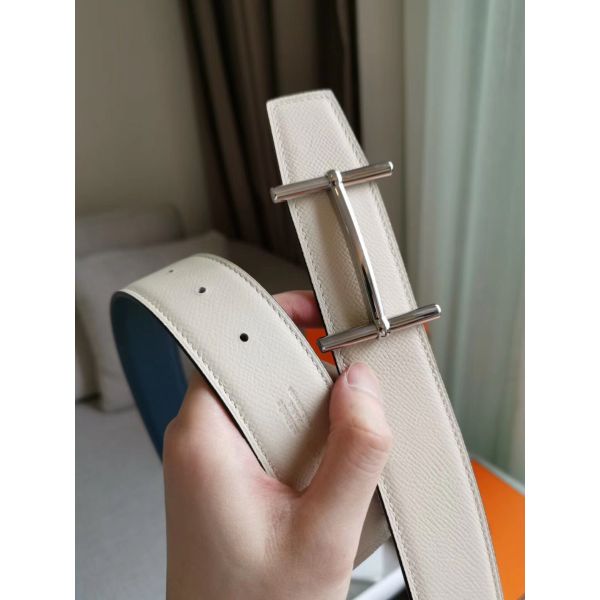 HERM H d'Ancre Reversible Belt In Blue/White Epsom Leather