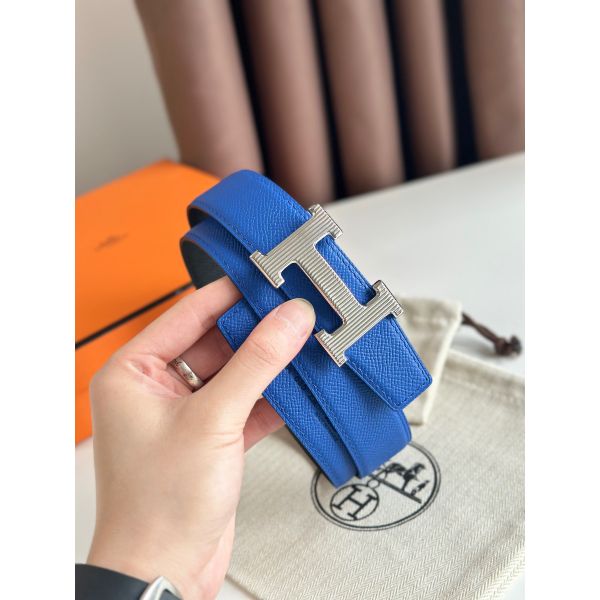 HERM H Striee Reversible Belt 32MM in Blue and Black Epsom Calfskin