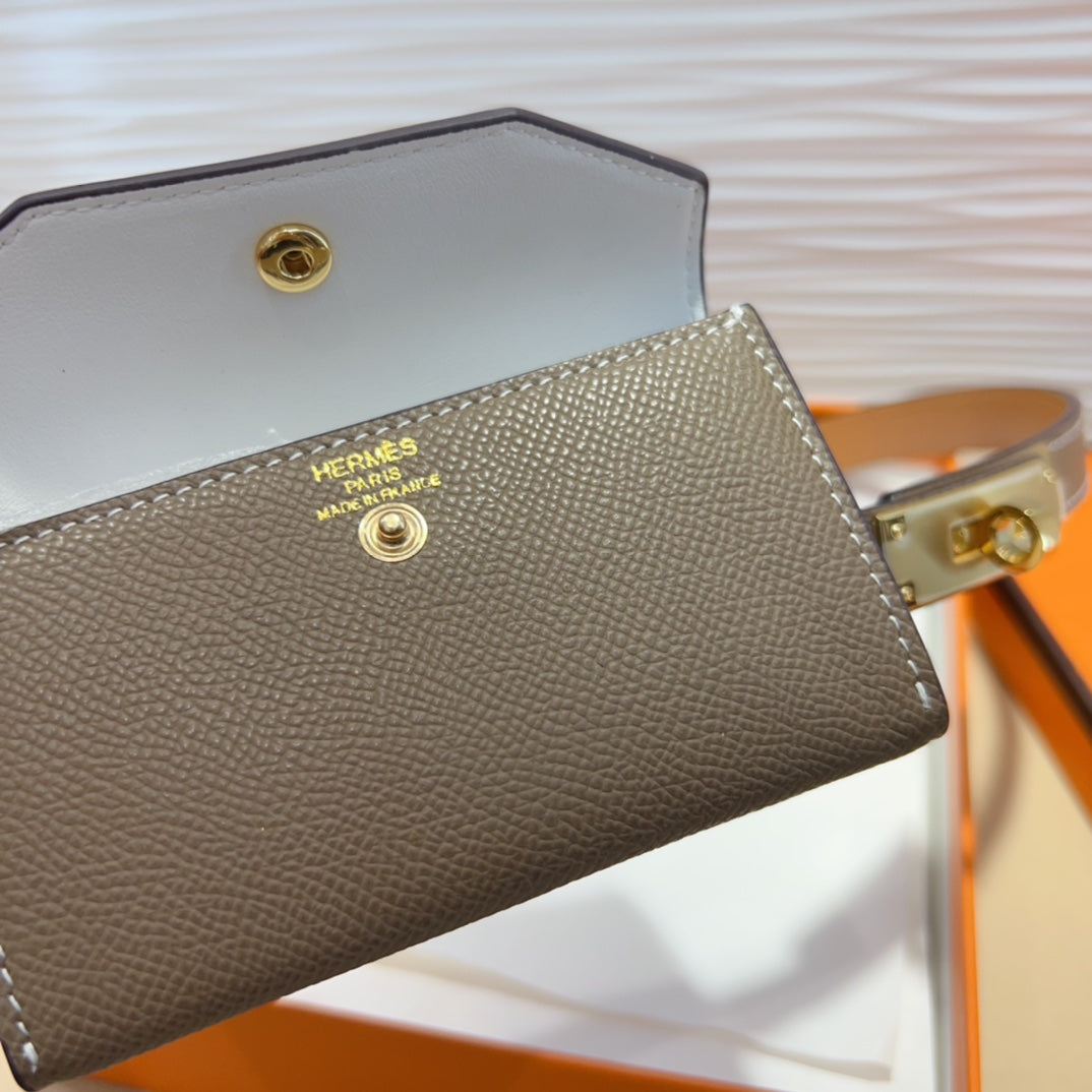 HM KELLY POCKET 18MM BELT CHOCOLATE BROWN LEATHER GOLD HARDWARE
