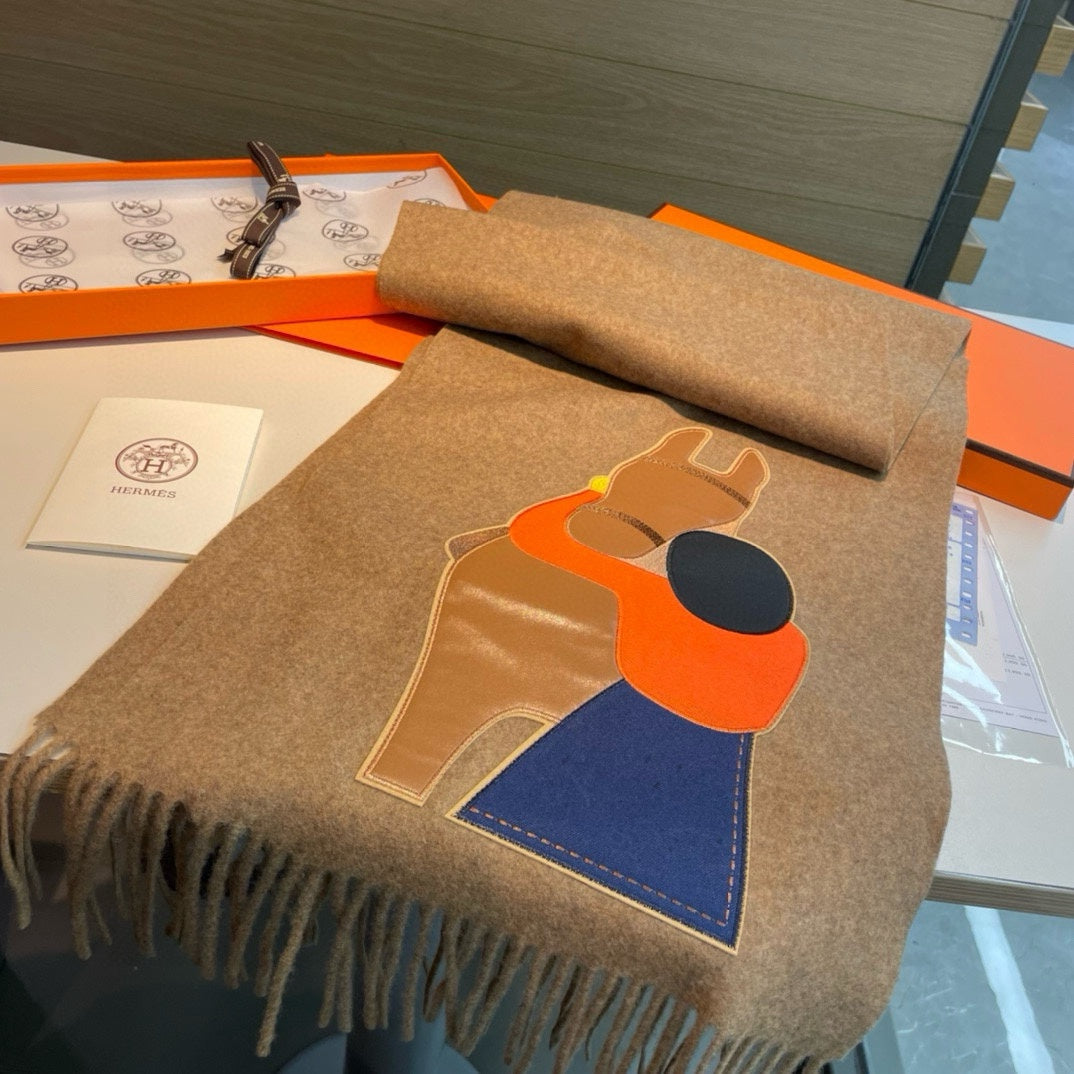 HORSE HUG SCARF 200 CM IN MEDIUM BROWN CASHMERE 394476