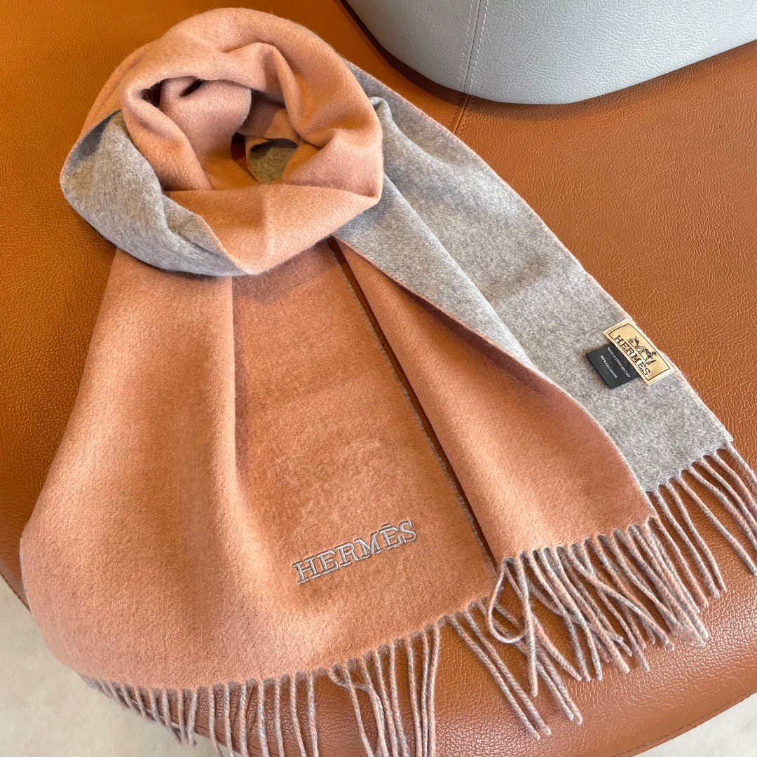 DOUBLE-FACE STOLE SCARF 180 CM IN PALE ORANGE MIX DOLPHIN GRAY CASHMERE 394460