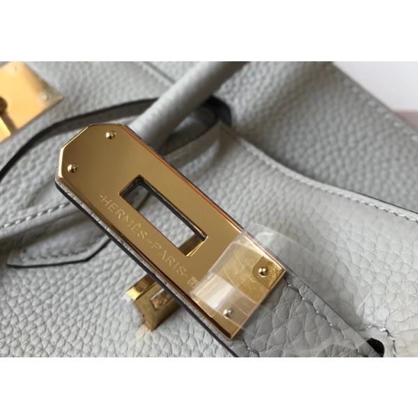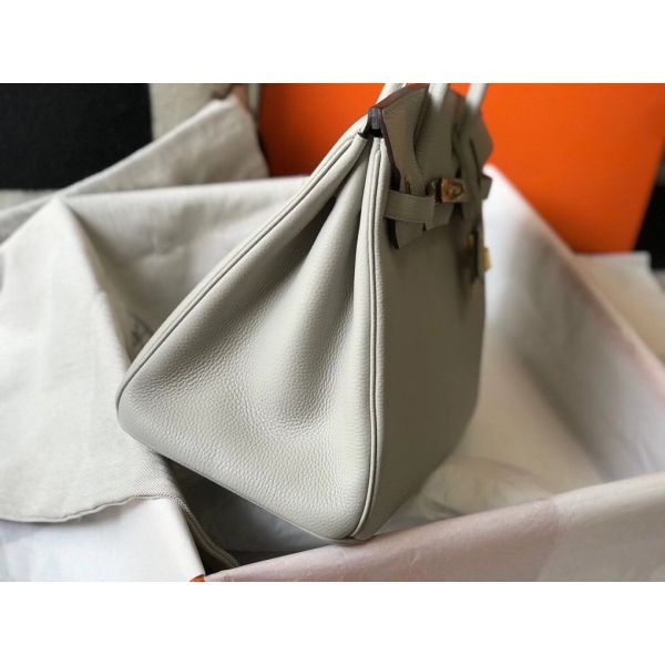 HERM Birkin 35cm Bag In Pearl Grey Clemence Leather GHW