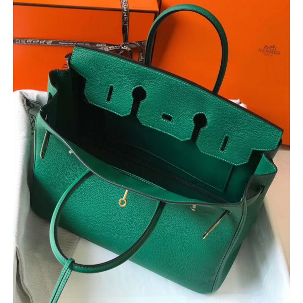 HERM Birkin 35cm Bag In Vert Vertigo Clemence Leather GHW
