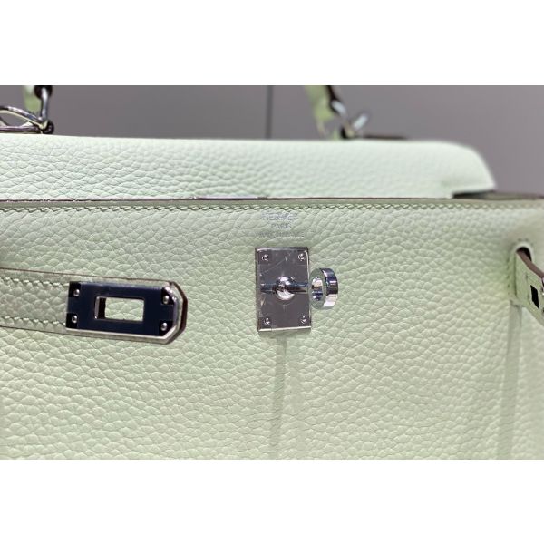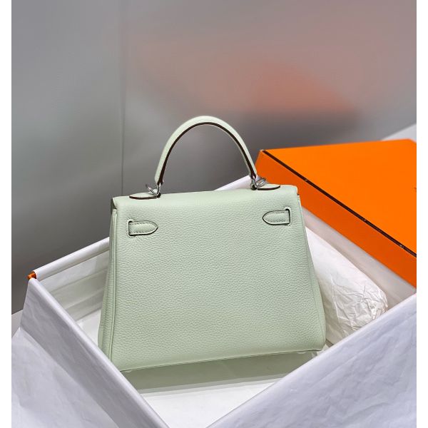 HERM Kelly 25cm Retourne Bag In Vert Fizz Clemence Leather