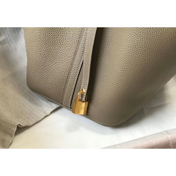 HERM Picotin Lock 22 Bag In Tourterelle Clemence Leather