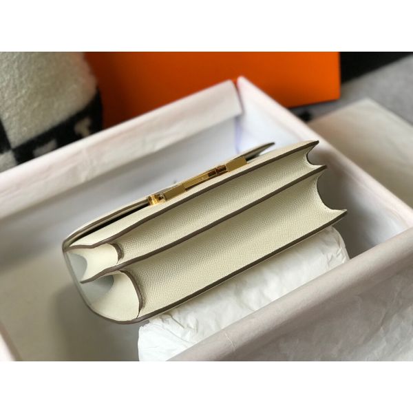 HERM White Constance MM 24cm Epsom Leather Bag
