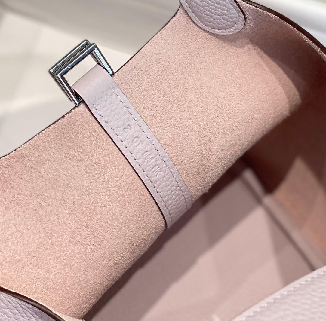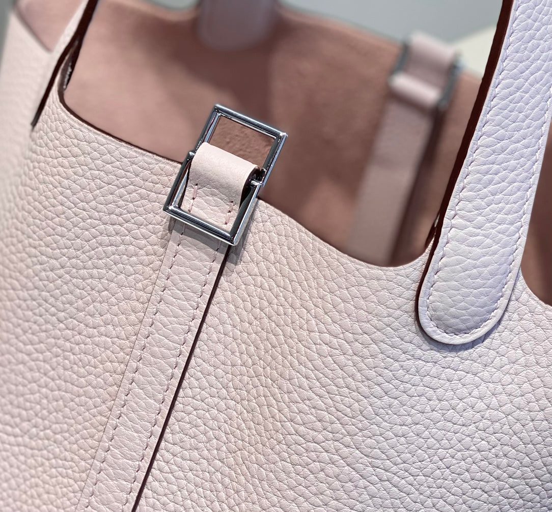 - Color: soft pink color, silver hardware
